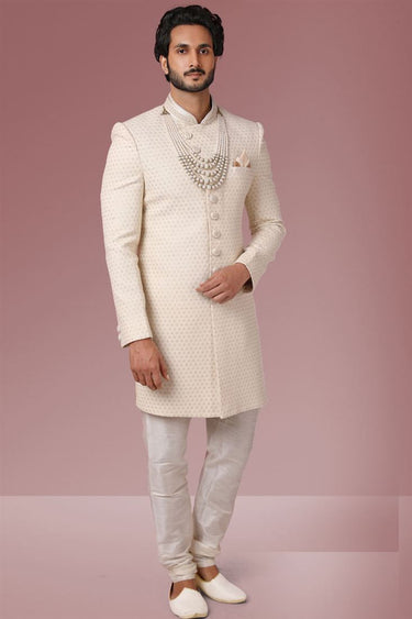 Cream Color Function Wear Stylish Sherwani In Georgette Fabric