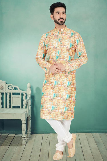 Cream Fancy Graceful Readymade Men Printed Kurta Pyjama For Festive Wear