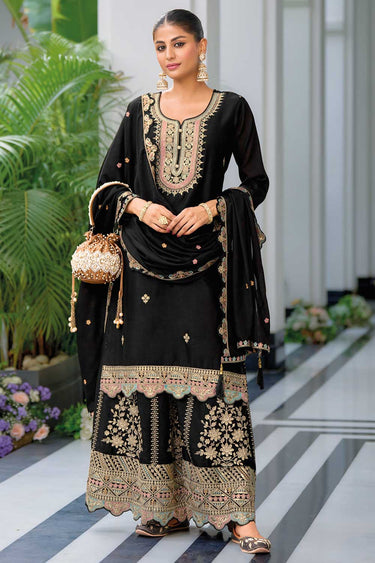 Creative Black Color Chinon Fabric Readymade Palazzo Suit