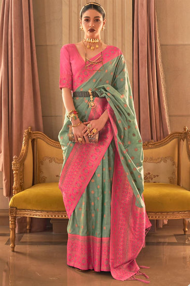 Creative Sea Green Color Silk Fabric Weaving Designs Saree