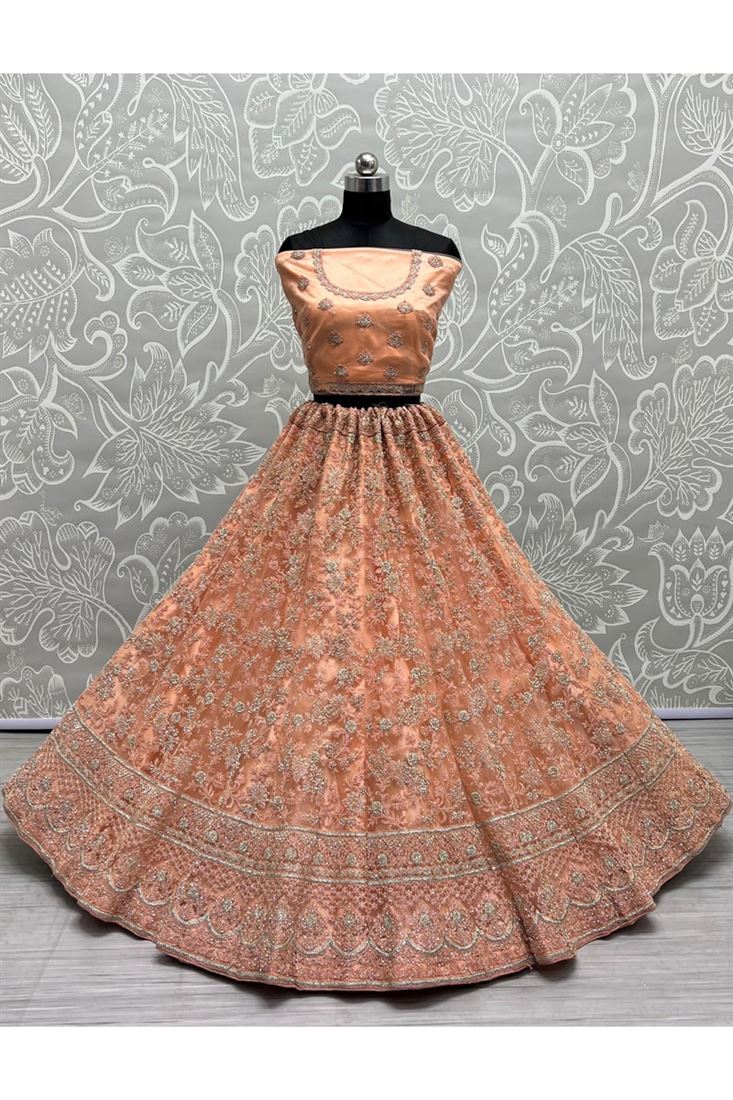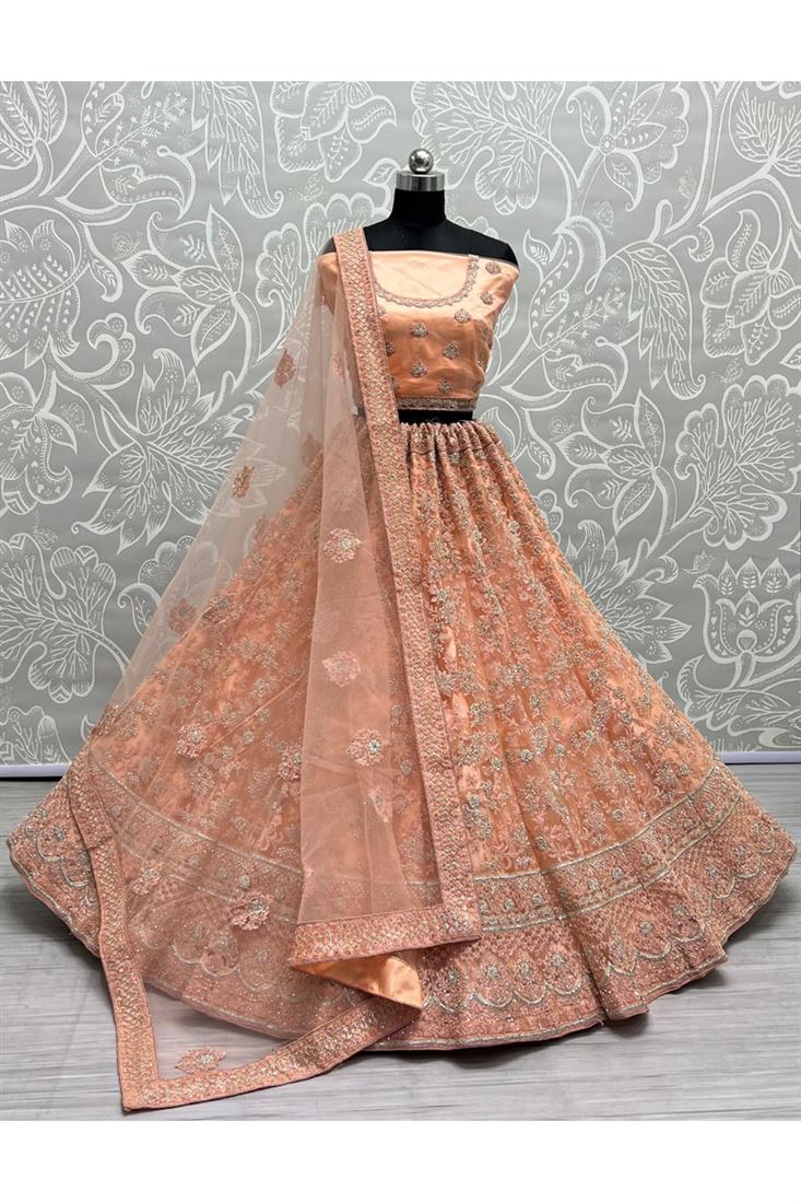 Elevate your wedding wardrobe with the Peach Color Lehenga, a masterpiece that combines classic charm with contemporary allure. Order now and experience the joy of wearing a truly exceptional ensemble that will make you the center of attention at any event.
