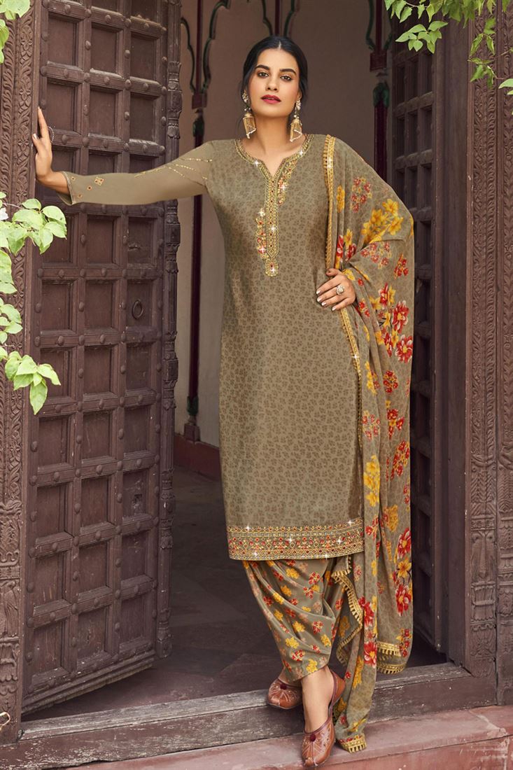 Crepe Fabric Beige Color Excellent Festival Style Patiala Suit