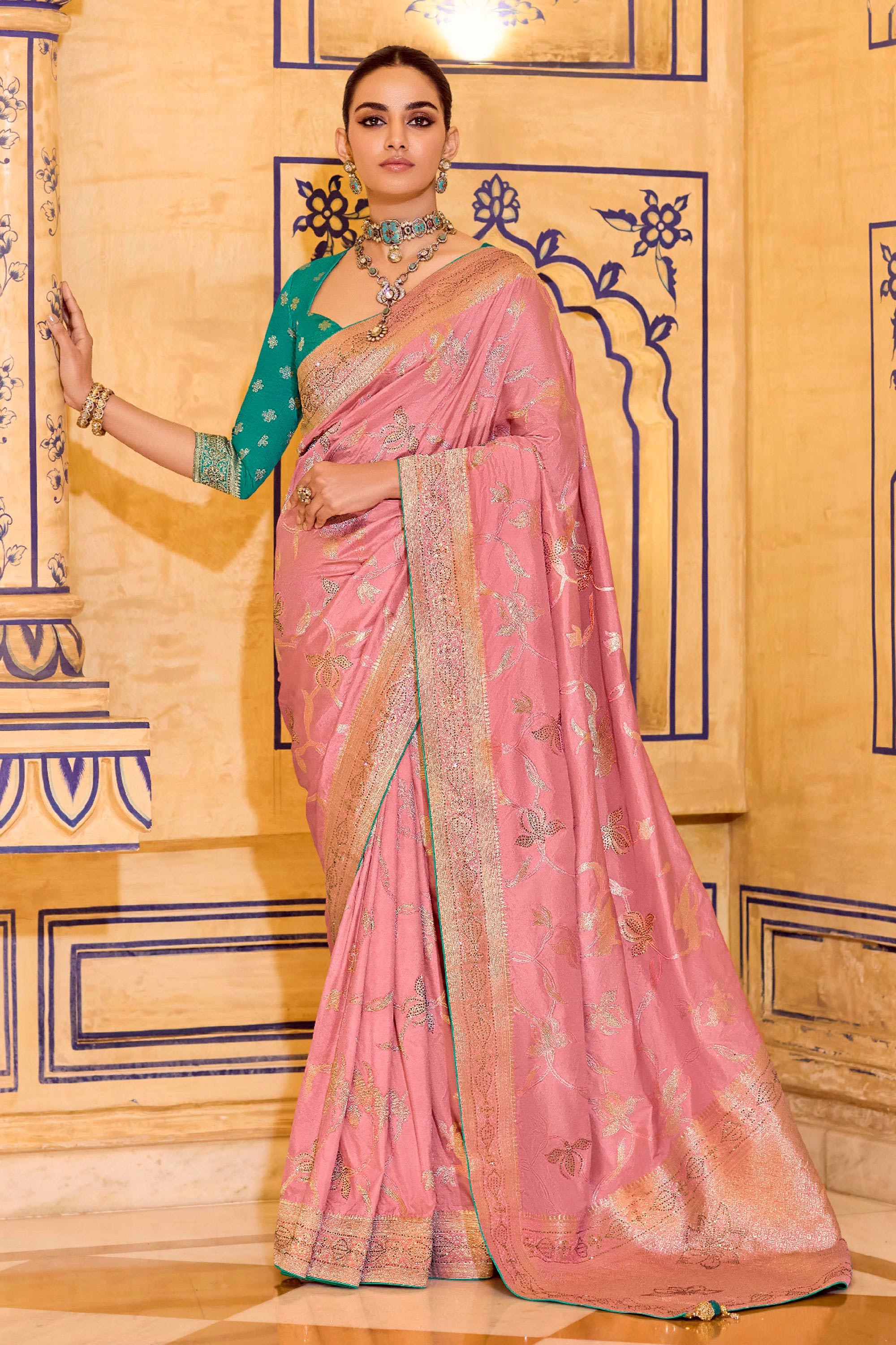 Crepe Silk Pink Color Weaving Work Saree For Wedding Wear