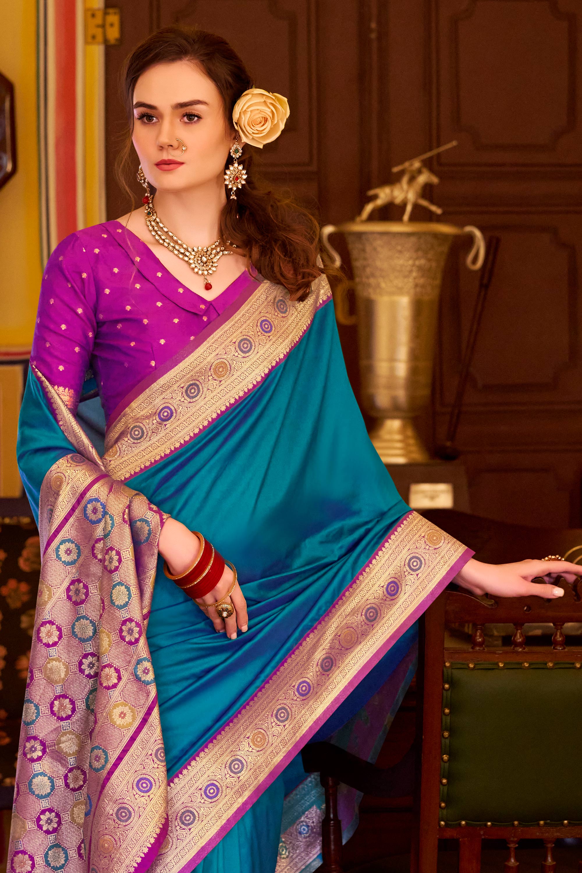 Cyan Art Silk Weaving Work Festive Wear Saree