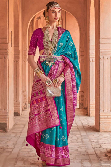 Cyan Color Pretty Art Silk Fabric Casual Patola Saree