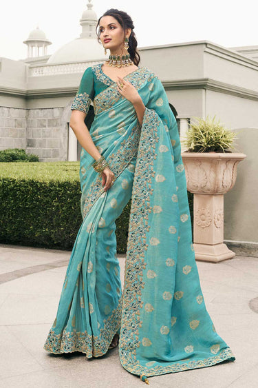 Cyan Color Wedding Wear Tissue Silk Charismatic Saree