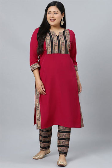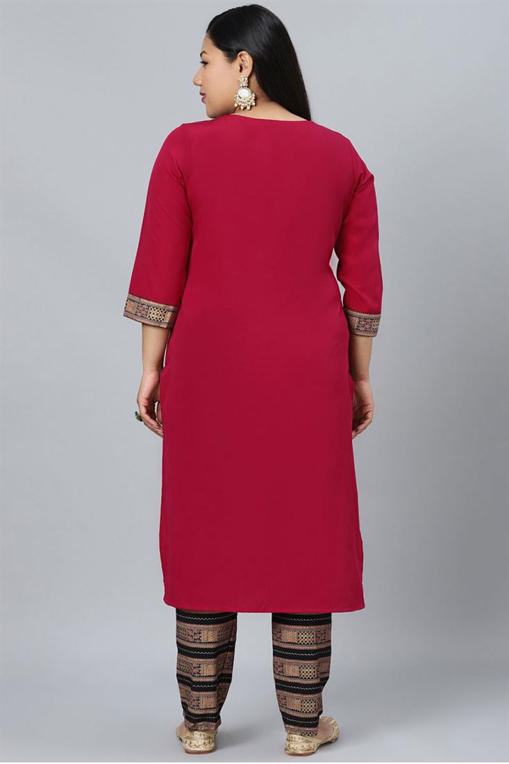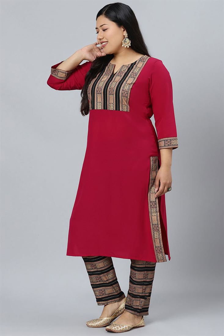 Daily Wear Crepe Fabric Plus Size Red Color Kurti With Bottom