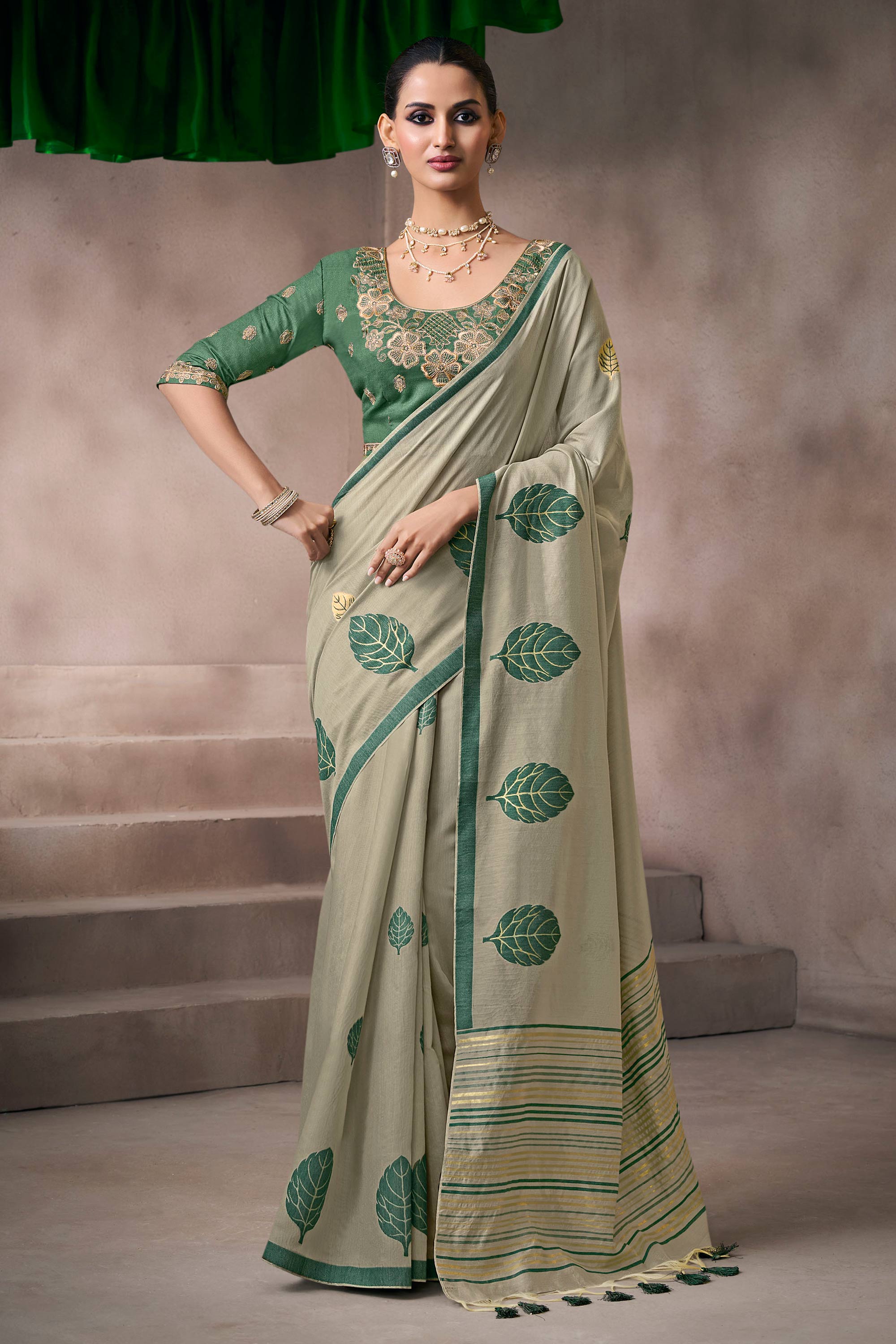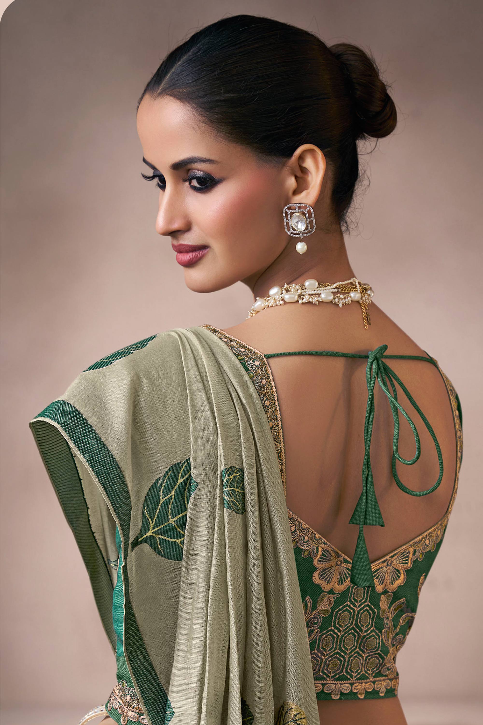 Dark Beige Viscose Cotton Embroidered Work Function Wear Saree
