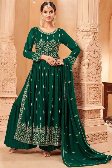 Dark Green Color Georgette Embellished Palazzo Suit For Function