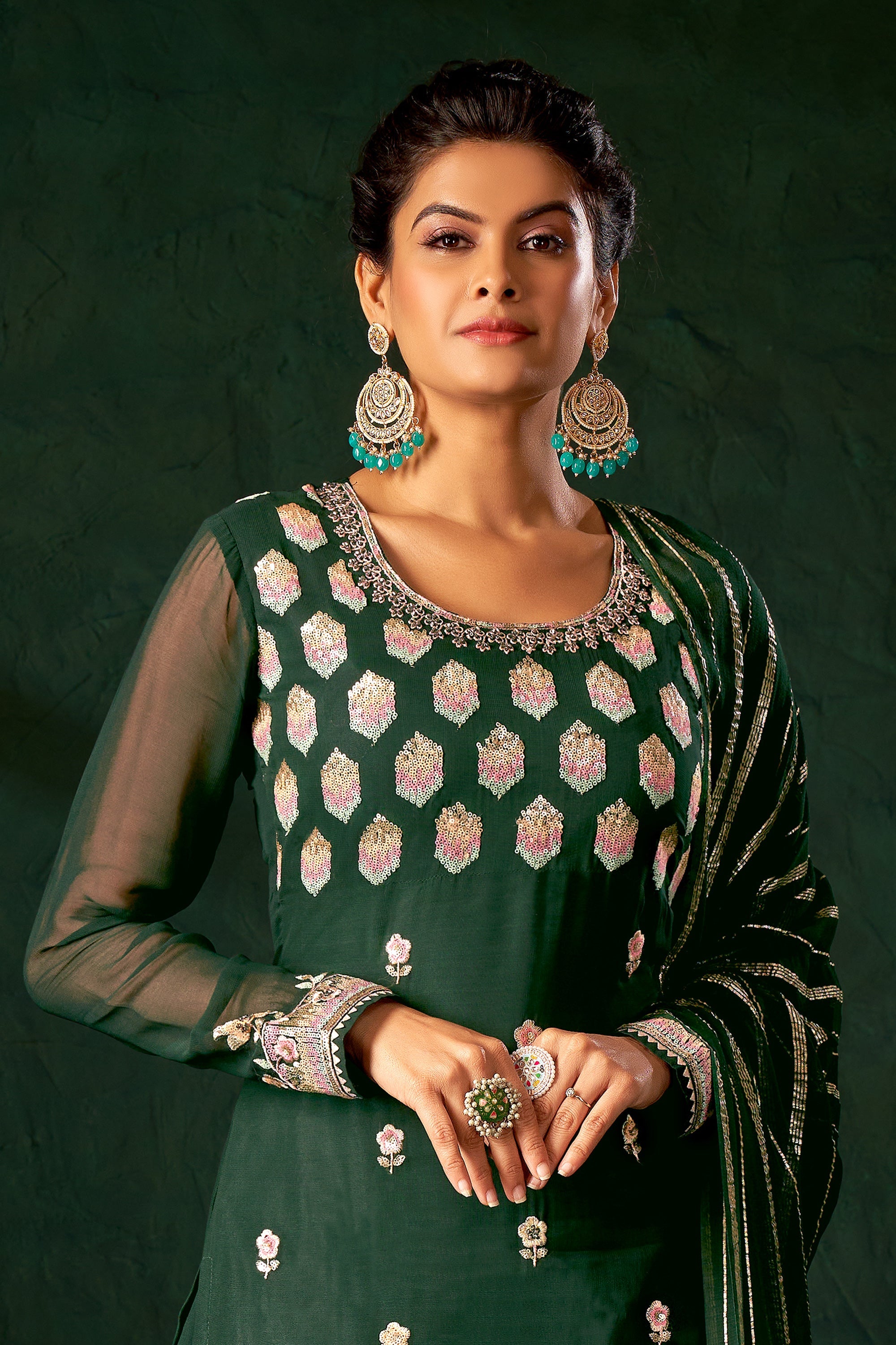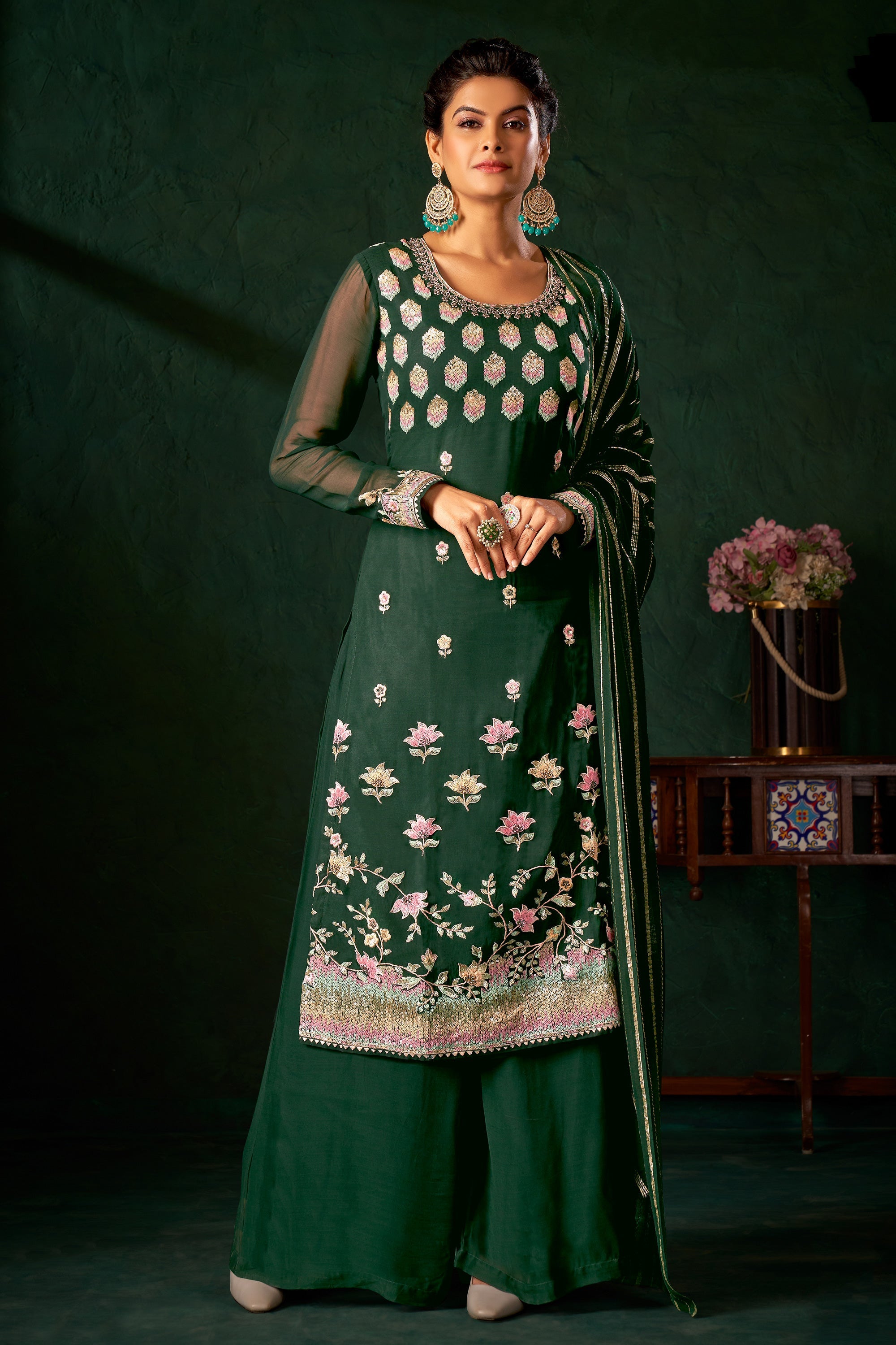 Dark Green Viscose Palazzo Salwar Suit