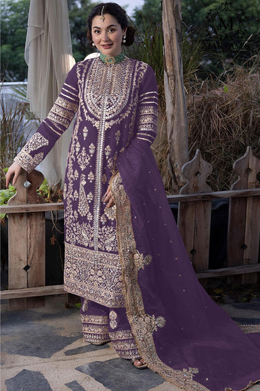 Dazzling Georgette Fabric Lavender Color Pakistani Replica Palazzo Suit
