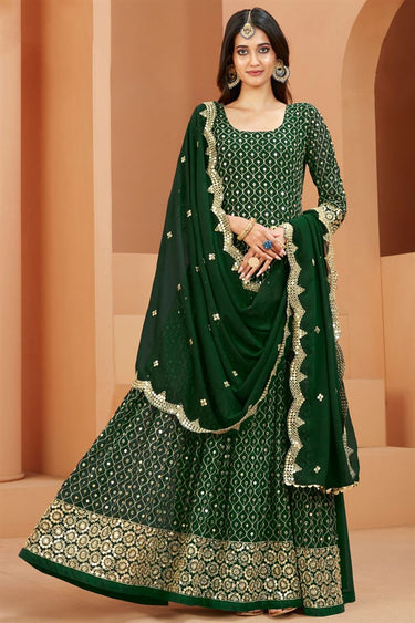 Dazzling Sequins Work On Georgette Dark Green Anarkali Suit