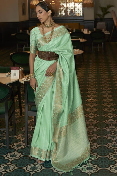Delicate Art Silk Fabric Festive Look Sea Green Color Saree