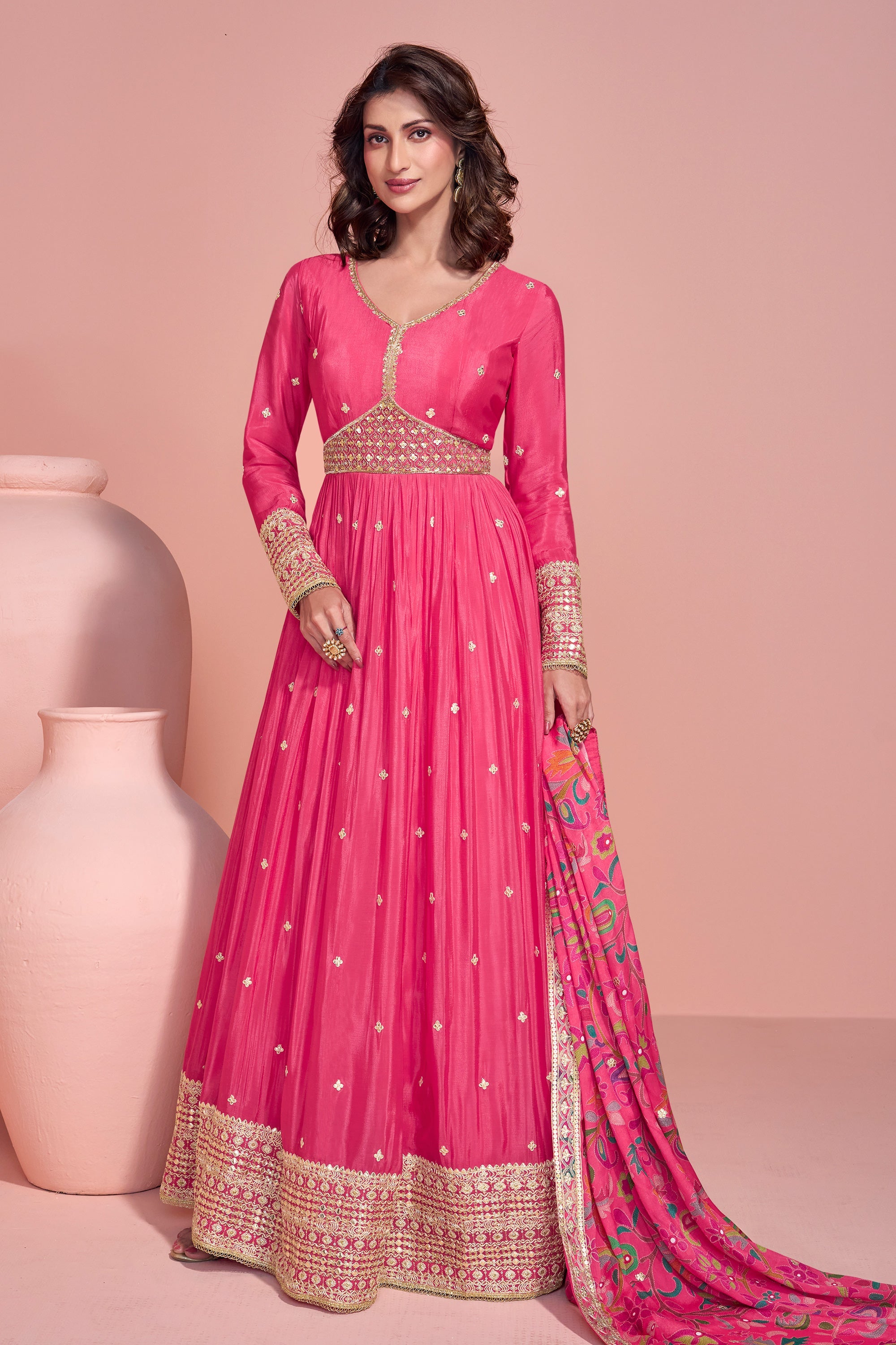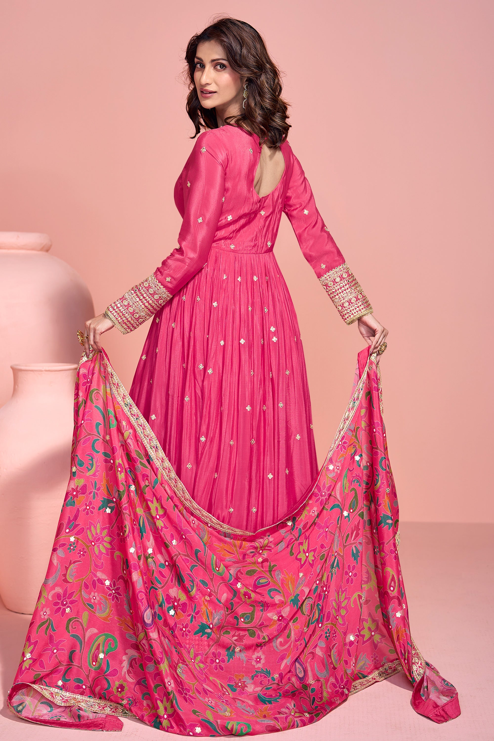 Designer Pink Color Readymade Floor Touch Gown With Dupatta