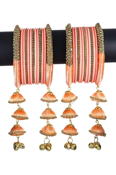 Designer Silk Thread Handmade Bangle Jewellery With Latkan In Peach
