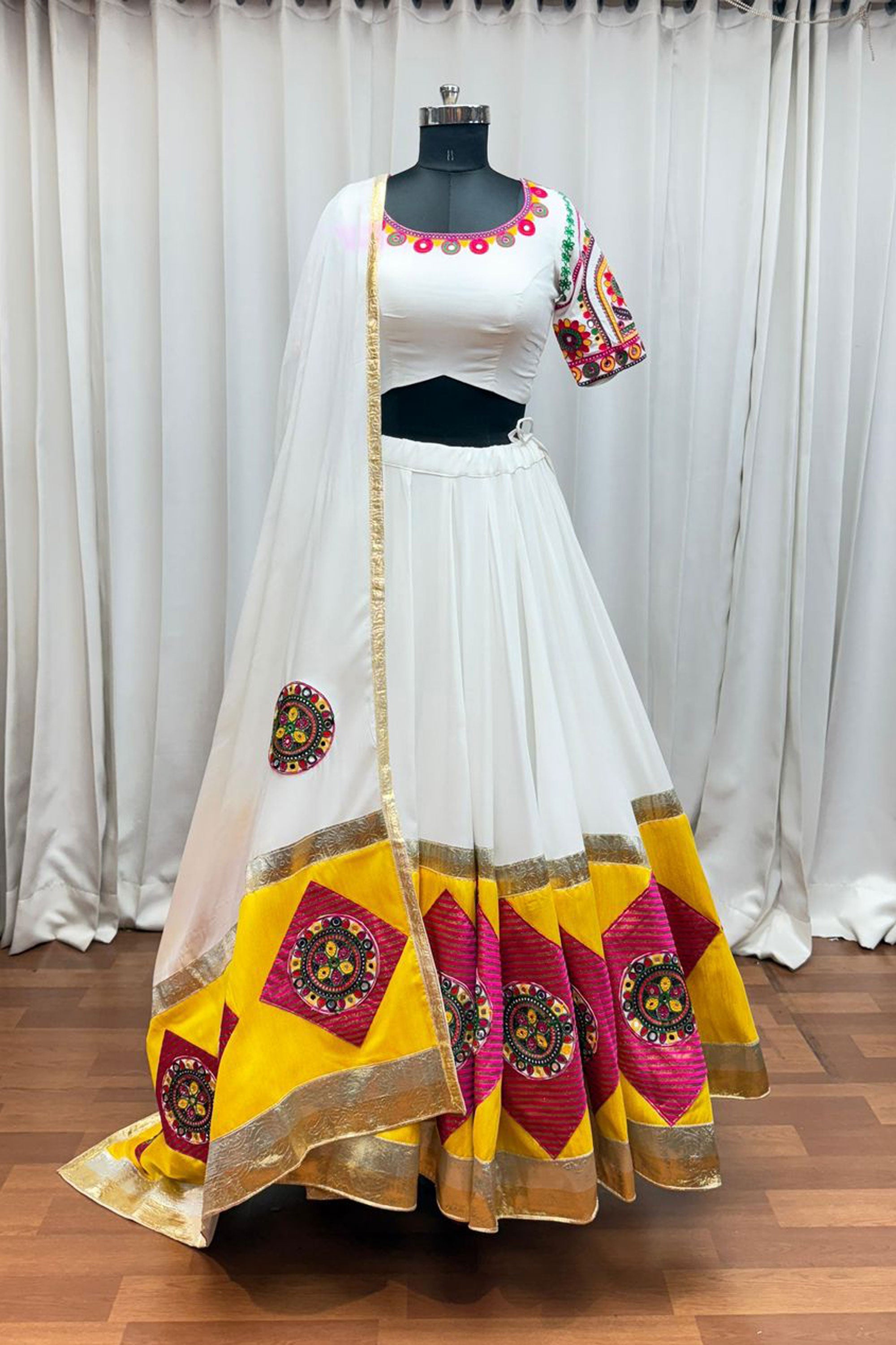 Eggplant White Navratri Special Viscose Cotton Lehenga Choli