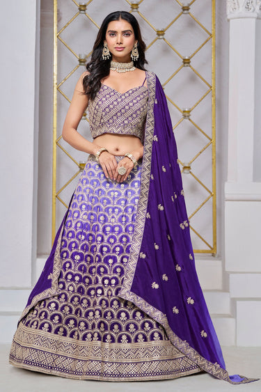 Elegance Dark Purple Chinon Sangeet Wear Lehenga Choli