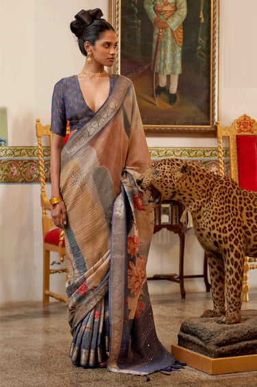 Step into timeless elegance with our Festive Wear Elegance Ajrak Print Saree in Multi Color. Made from high-quality Crush Tissue, this saree combines traditional Ajrak print with modern handwork detailing. The fluid drape offers an air of sophistication and all-day comfort. Perfect for festive occasions, it embodies the spirit of Indian heritage and contemporary style. To keep it looking its best, dry clean only. Ideal for women who appreciate exquisite craftsmanship and unique fashion.