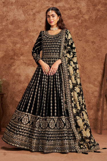 Elegant Black Color Velvet Anarkali Dress