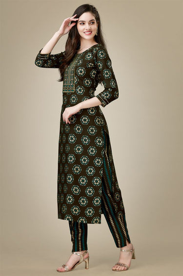 Elegant Brown Color Rayon Fabric Kurti With Pant