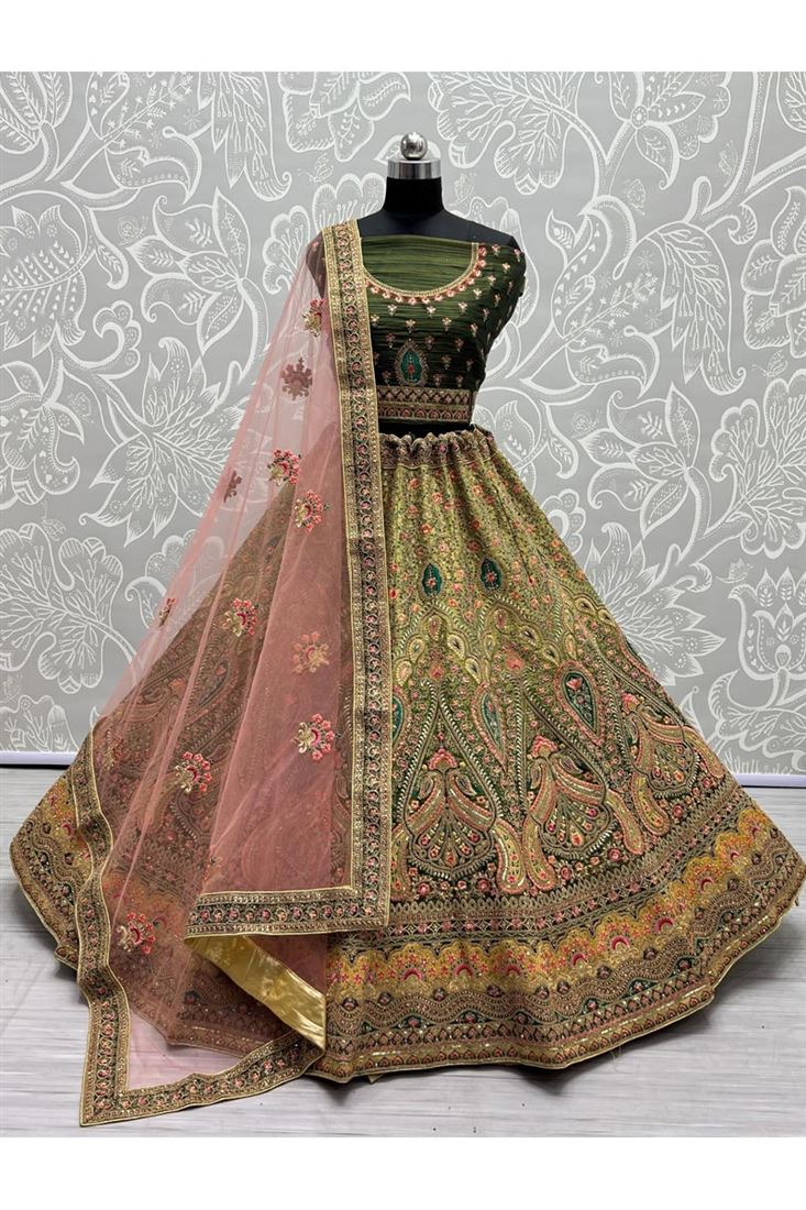 Crafted with meticulous attention to detail, this Green bridal lehenga features intricate embroidery that adds a touch of opulence to your special day. Made from high-quality Net fabric, it drapes beautifully and offers a comfortable fit. Whether you're the bride or attending a wedding, this lehenga will make you feel like royalty.
