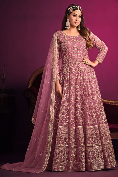 Elegant Pink Color Net Anarkali Suit with Sparkling Sequins Work For Sangeet