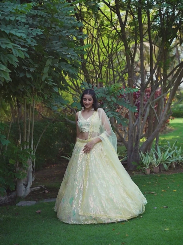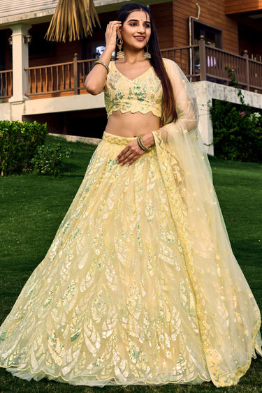 Elegant Yellow Color Net Fabric Function Wear Lehenga