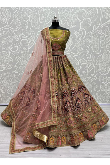 Embellished Heavy Look Embroidered Work On Green Color Net Fabric Bridal Lehenga Choli