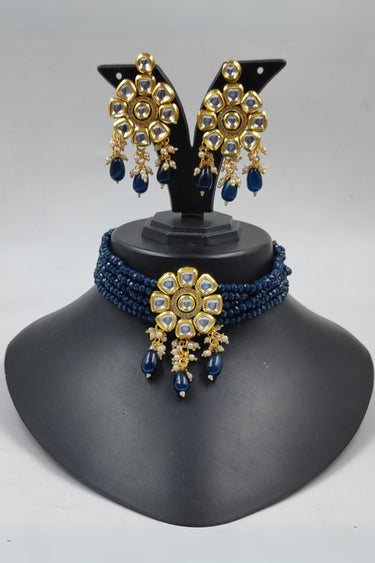 Embellished Navy Blue Color Alloy Material Designer Necklace with Earrings