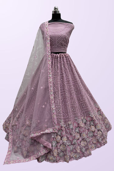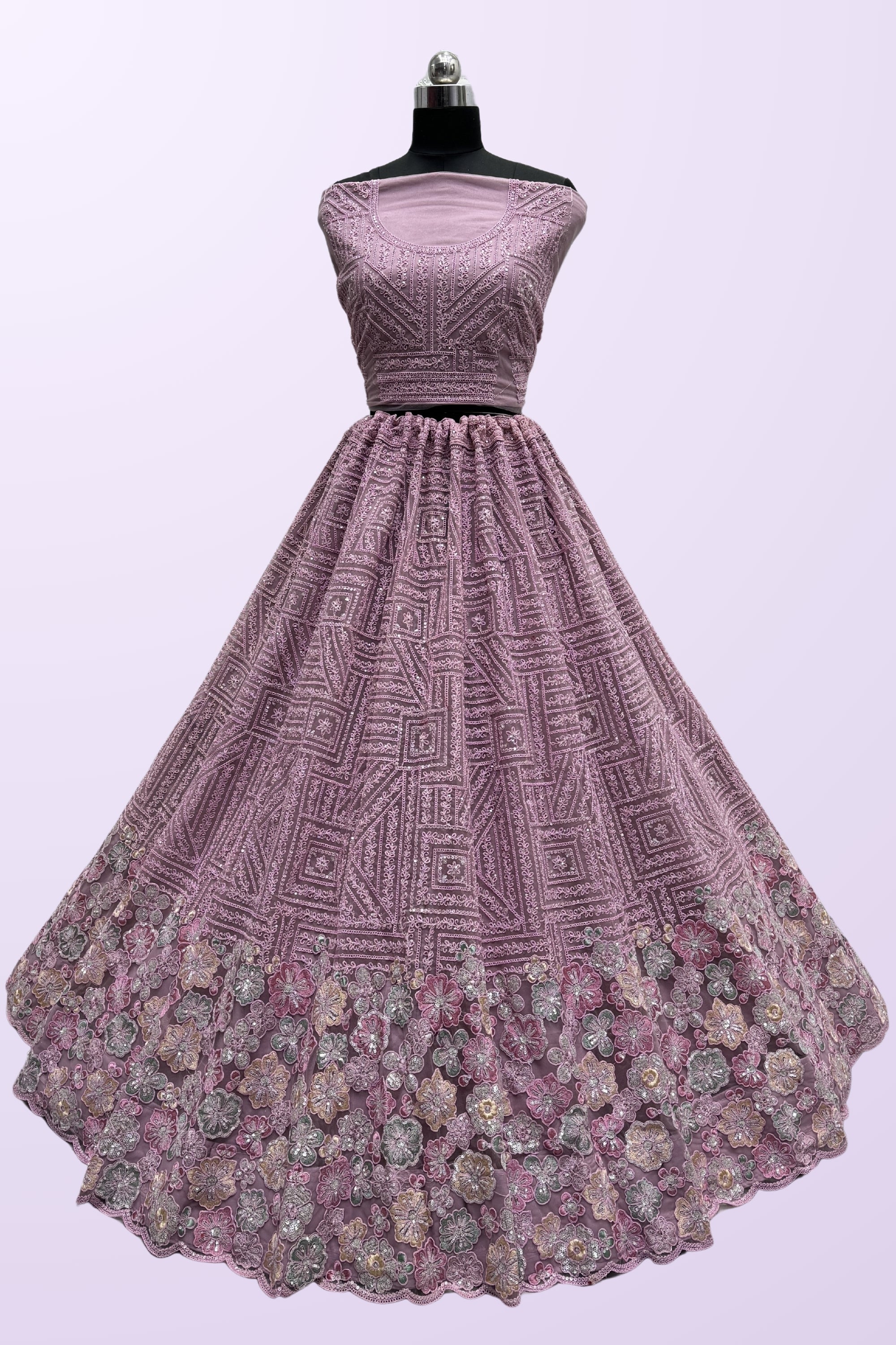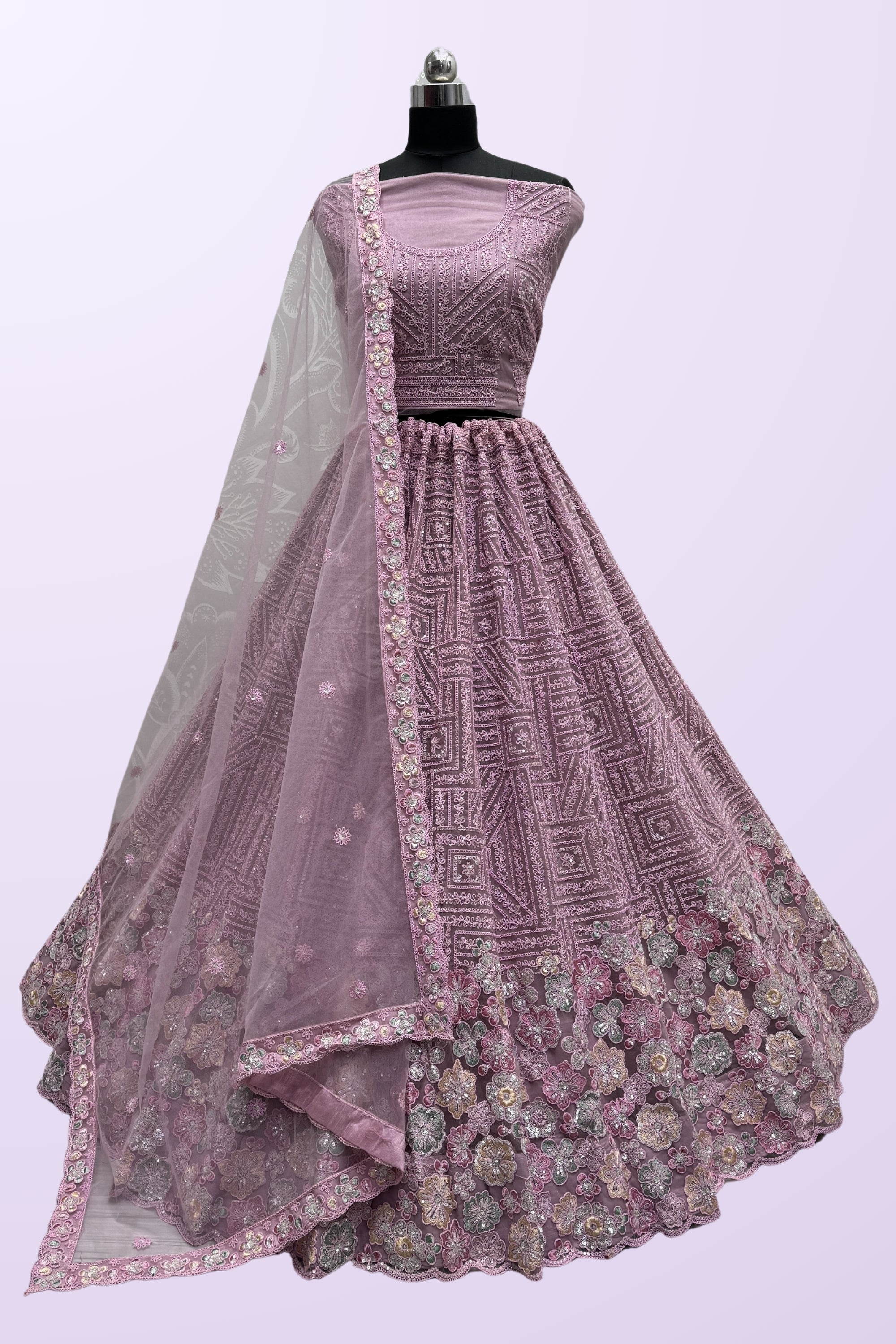 Embellished Pink Color Sequins Embroidered Net Fabric Lehenga