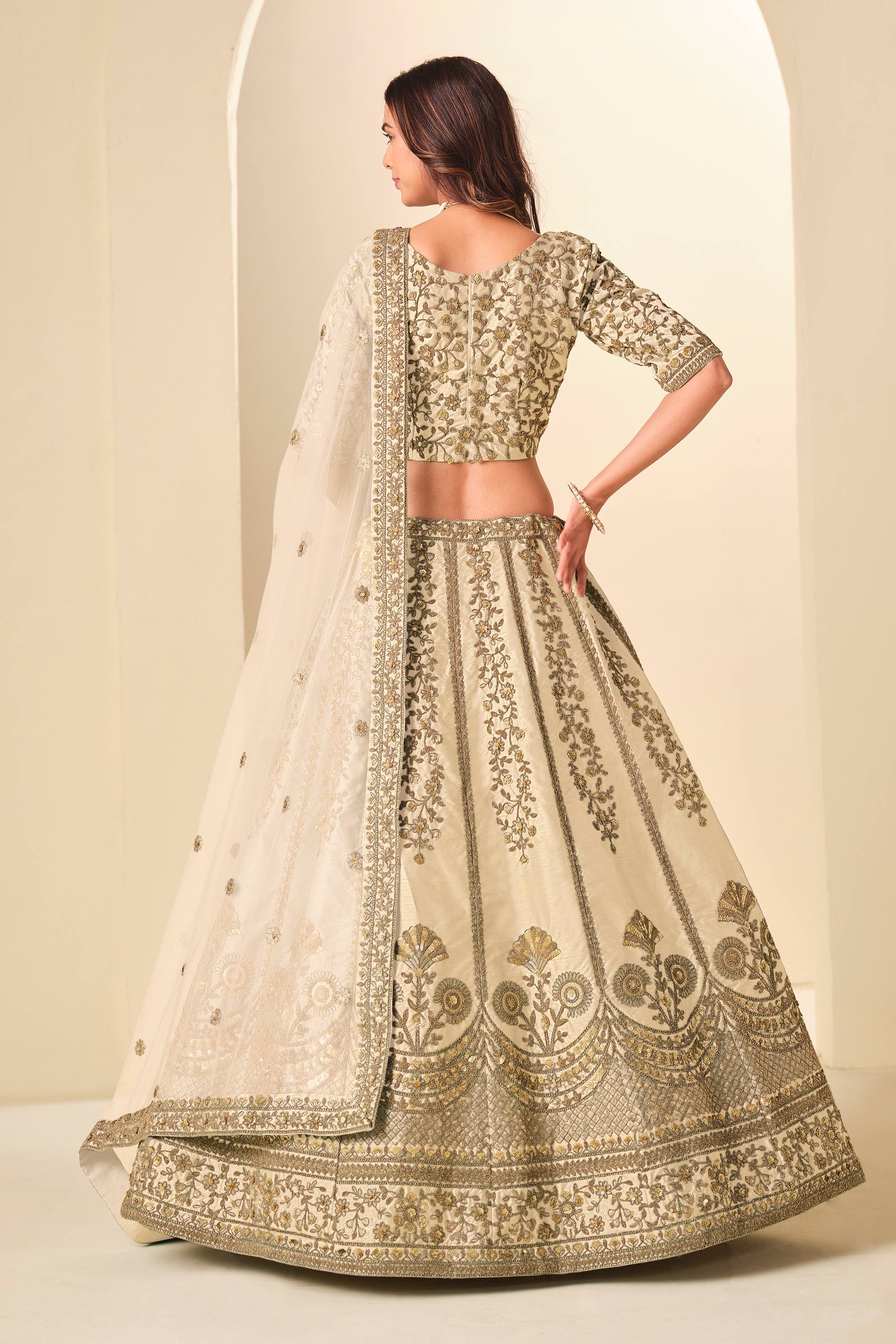 Embroidered Art Silk Fabric Beige Lehenga Choli For Function Wear