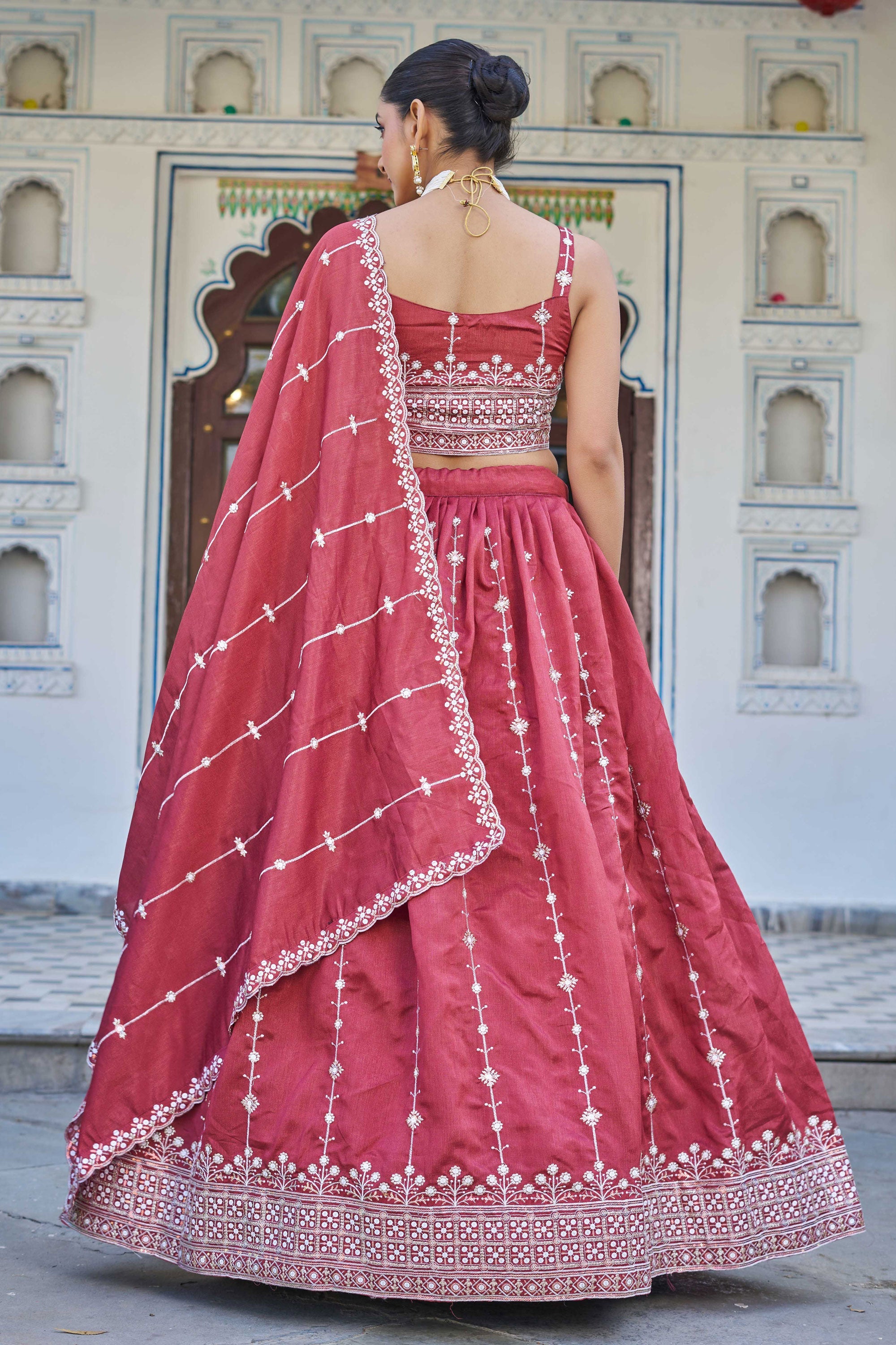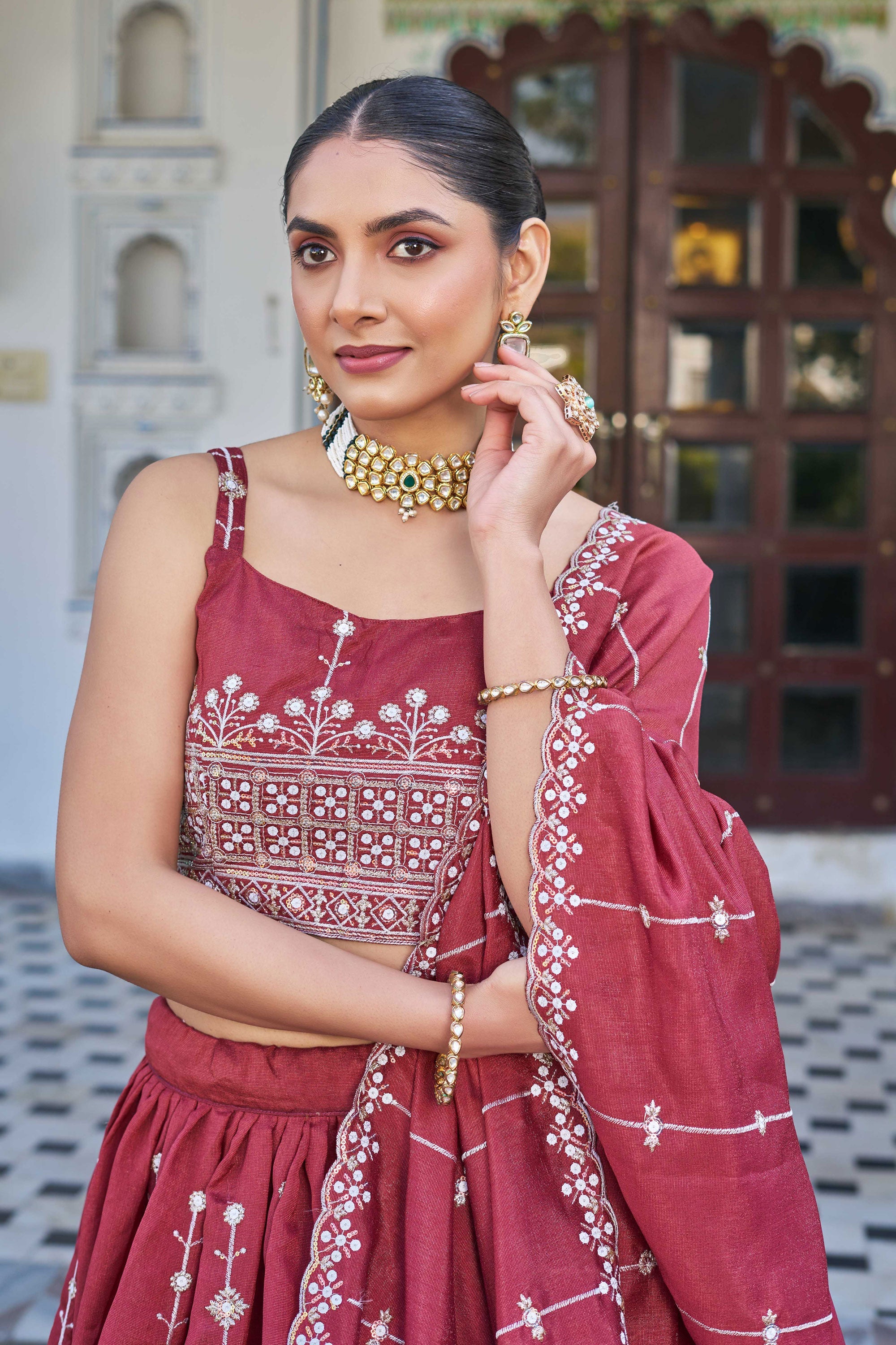 Step into elegance with our Embroidered Art Silk Sangeet Wear Lehenga, designed in a sumptuous hue that flatters every skin tone. This set includes a gorgeously crafted blouse that pairs seamlessly with the richly adorned lehenga skirt, making it the perfect choice for special occasions like sangeets, weddings, and festive events. Made from premium art silk, the outfit provides both comfort and a luxurious feel. The detailed embroidery on the blouse and lehenga adds a touch of traditional sophistication. Don't miss out on this exquisite ensemble that combines classic design with modern flair.