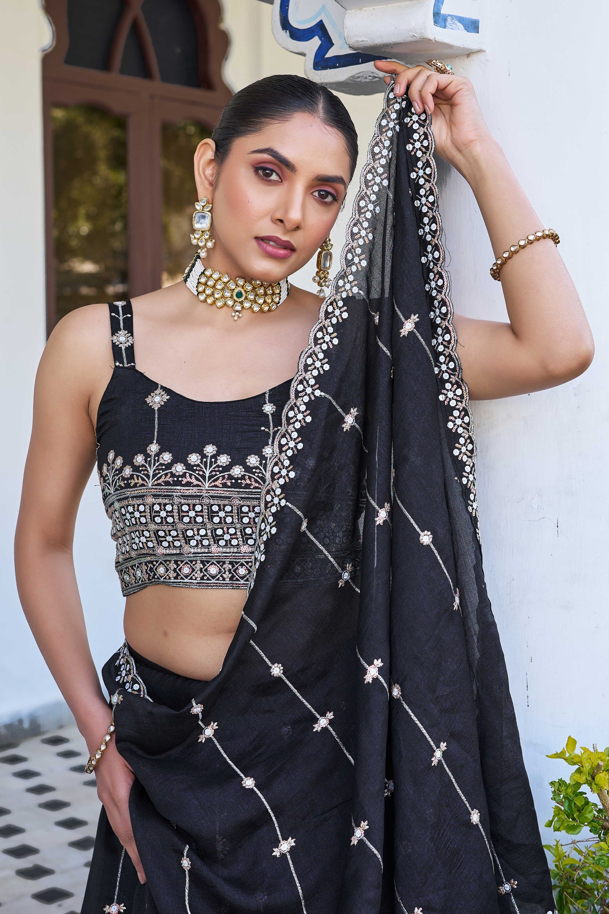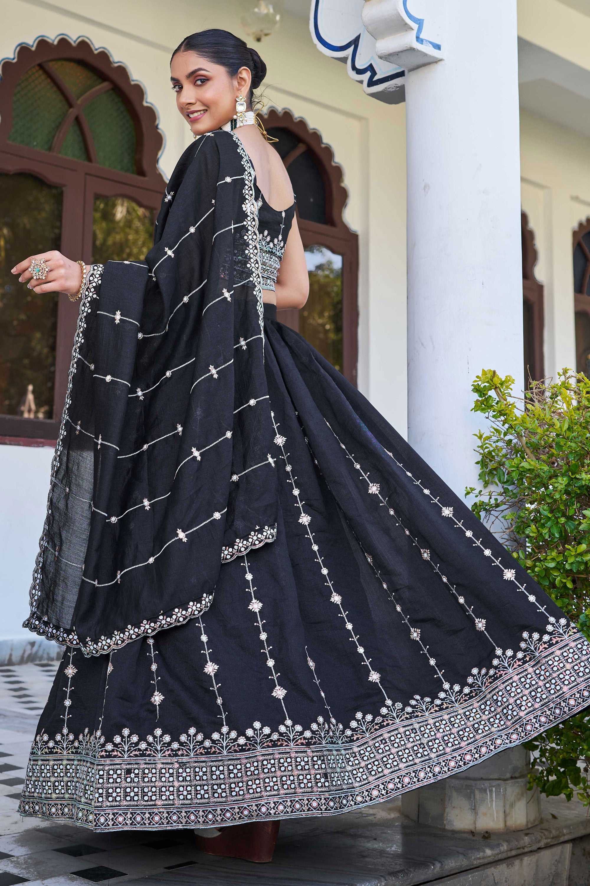 Embroidered Black Art Silk Sangeet Wear Lehenga Choli