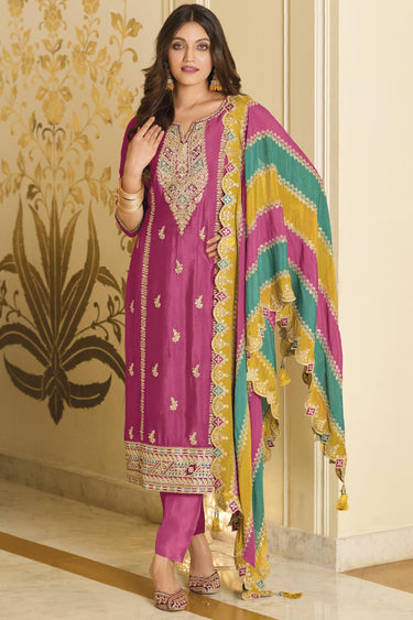 Embroidered Designer Salwar Kameez In Art Silk Fabric Pink Color