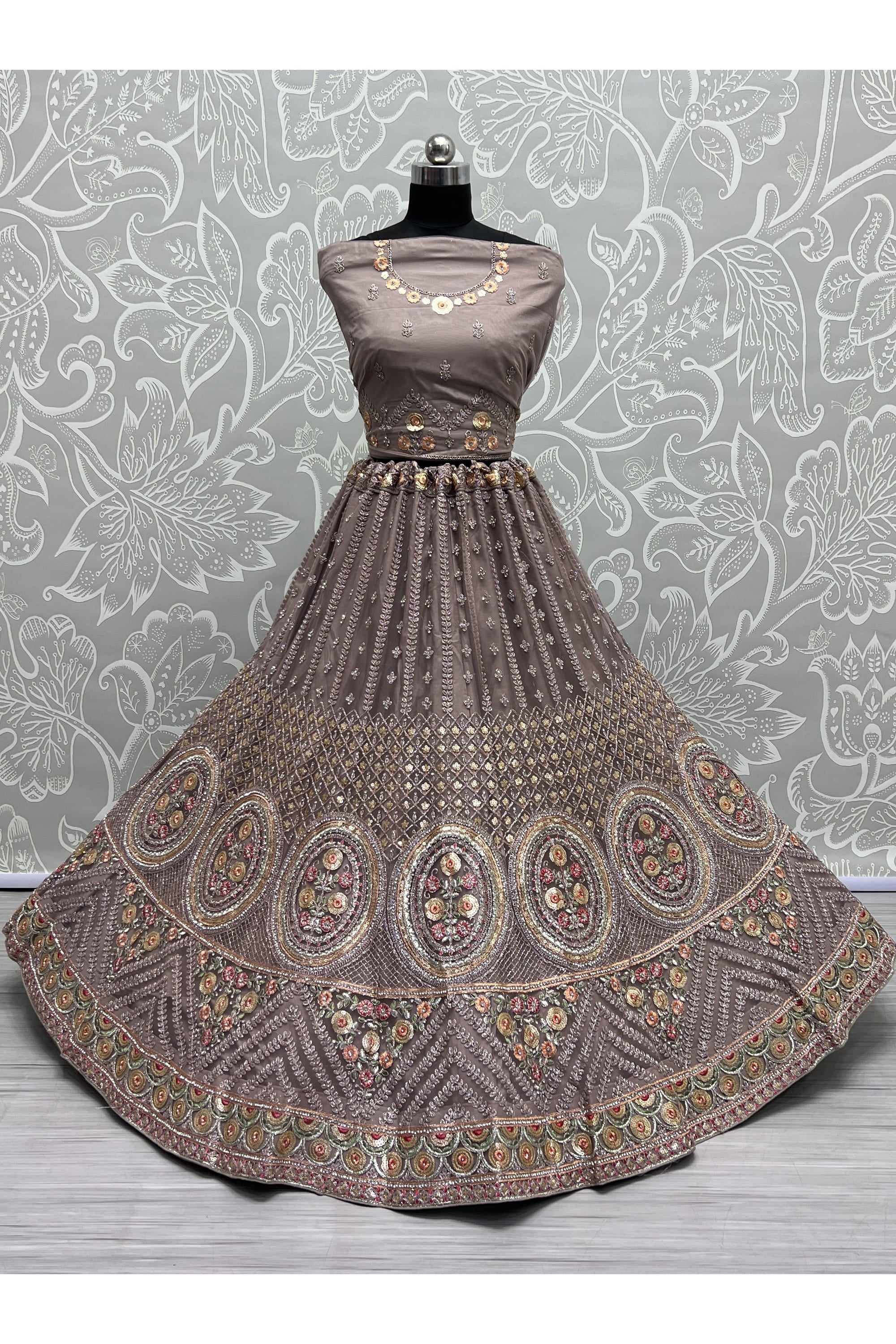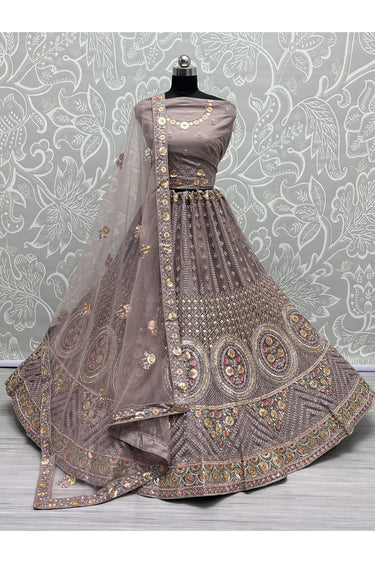 Embroidered Grey Color Bridal Lehenga In Net Fabric With Designer Choli