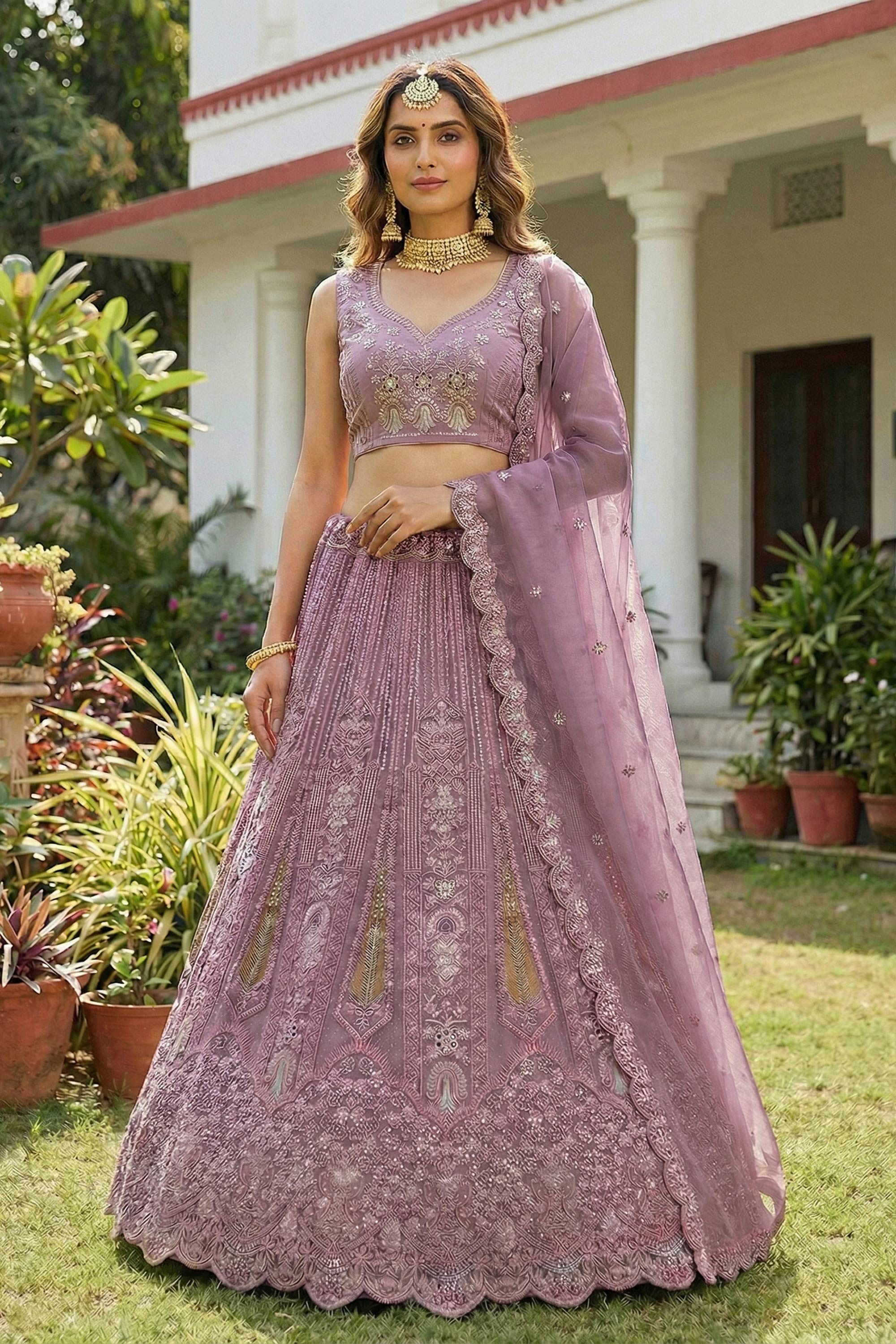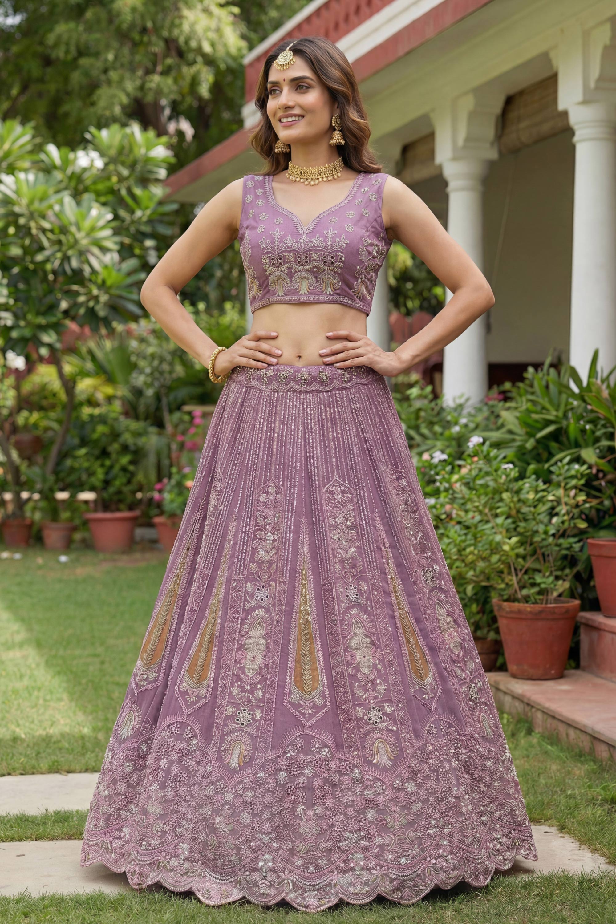 Embroidered Net Lavender Wedding Wear Lehenga Choli
