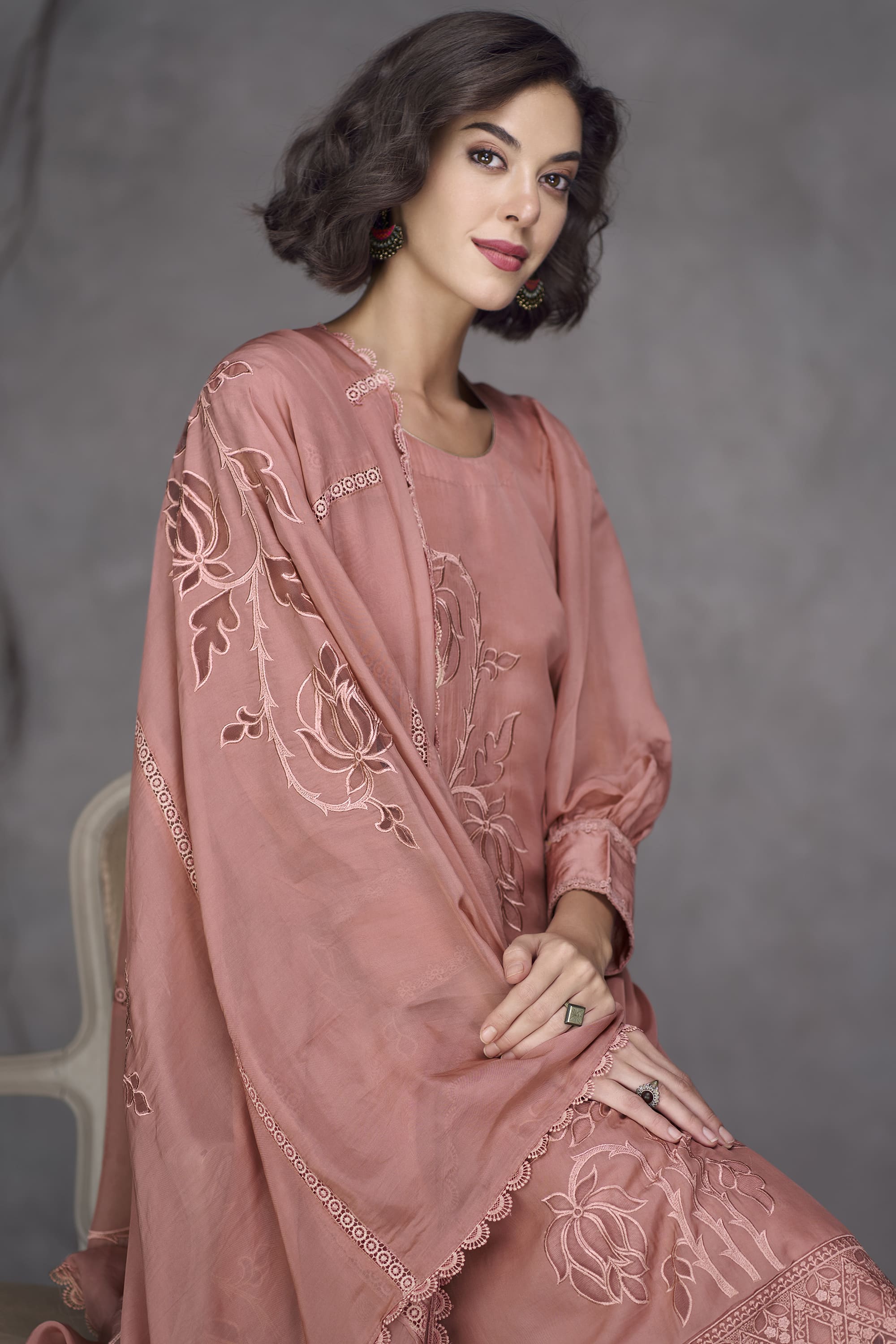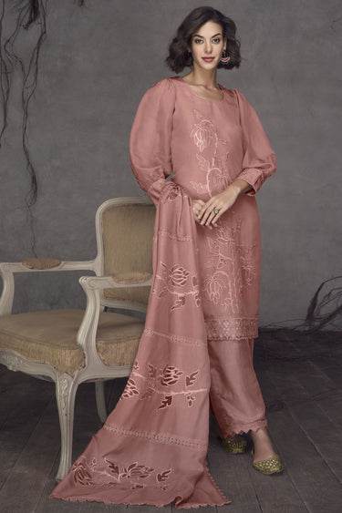 Embroidered Pink Color Readymade Palazzo Salwar Suit In Art Silk Fabric
