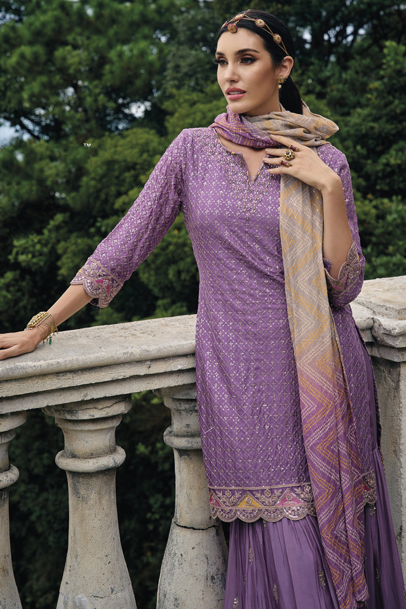 Embroidered Purple Color Function Wear Readymade Palazzo Salwar Suit In Chinon Fabric