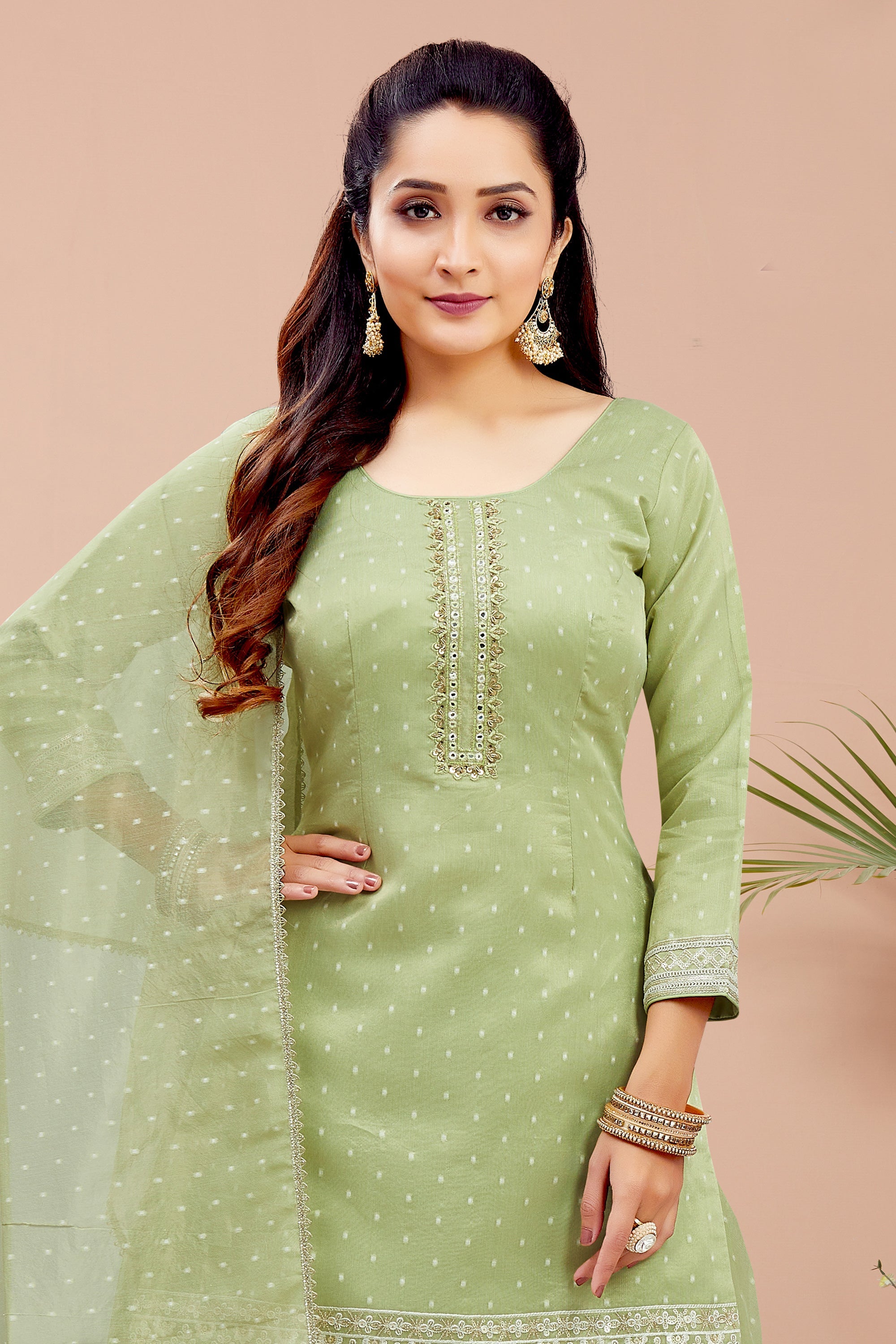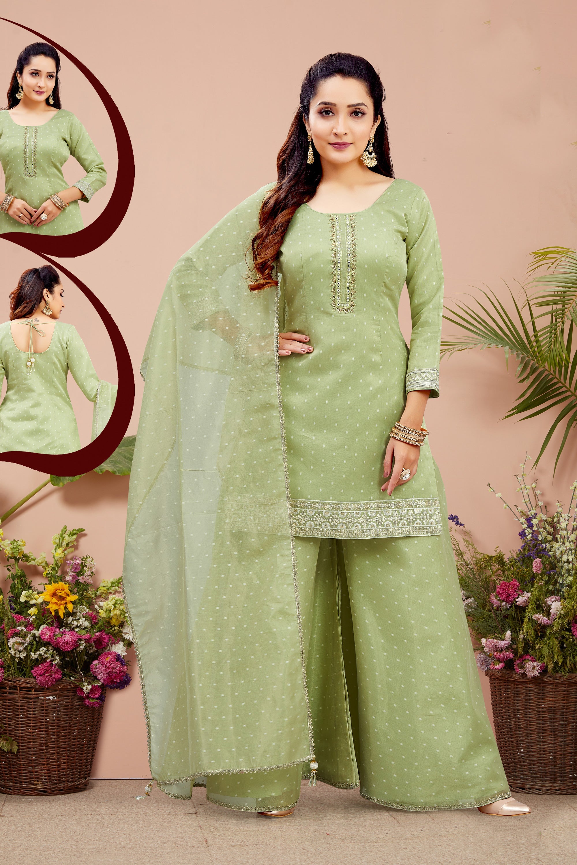 Embroidered Sea Green Silk Readymade Palazzo Salwar Suit