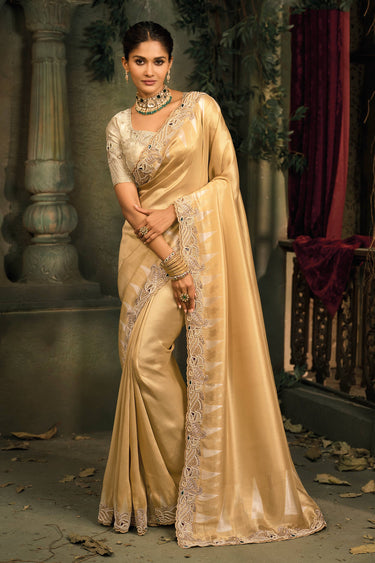 Embroidered Silk Peach Wedding Wear Saree