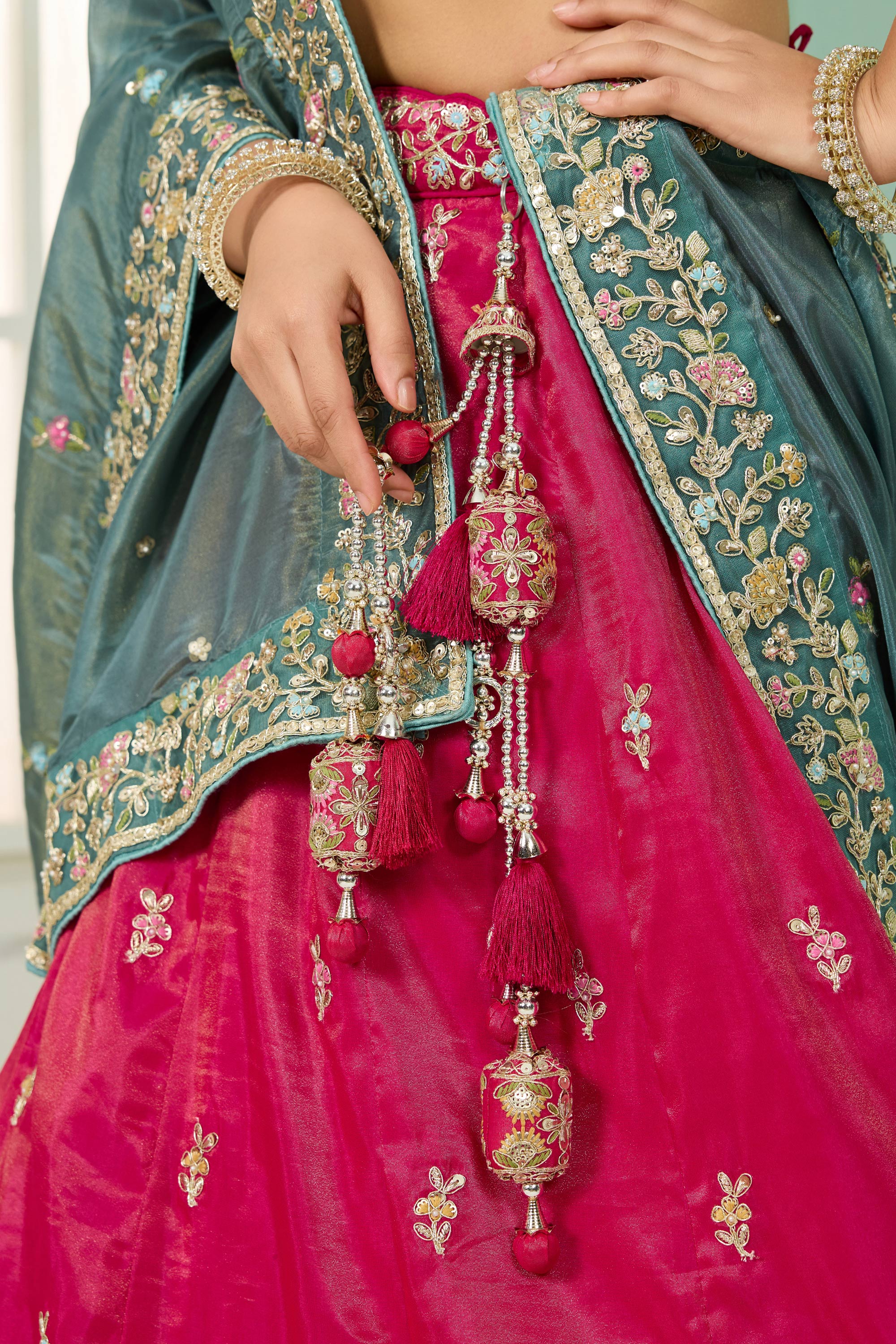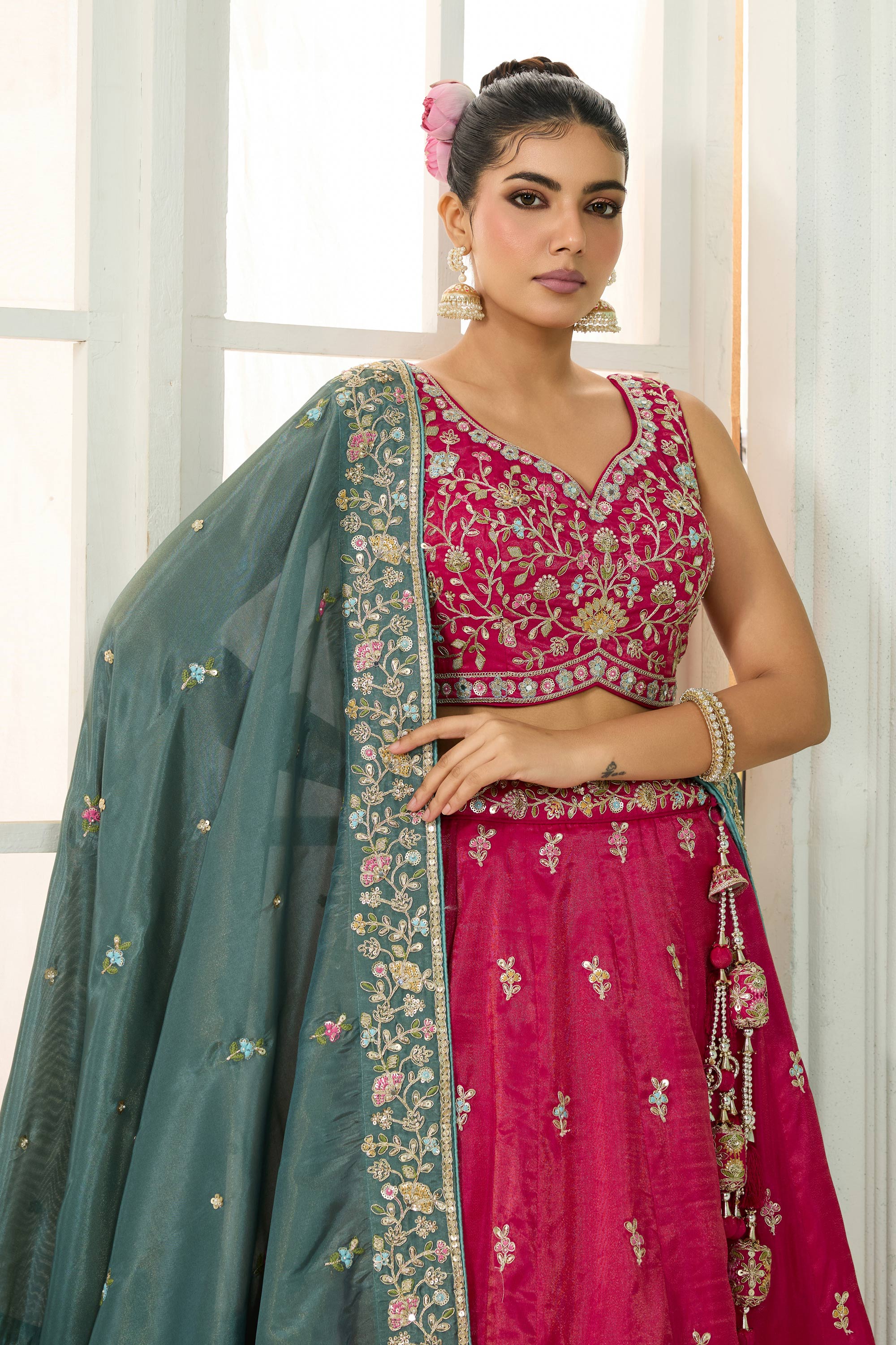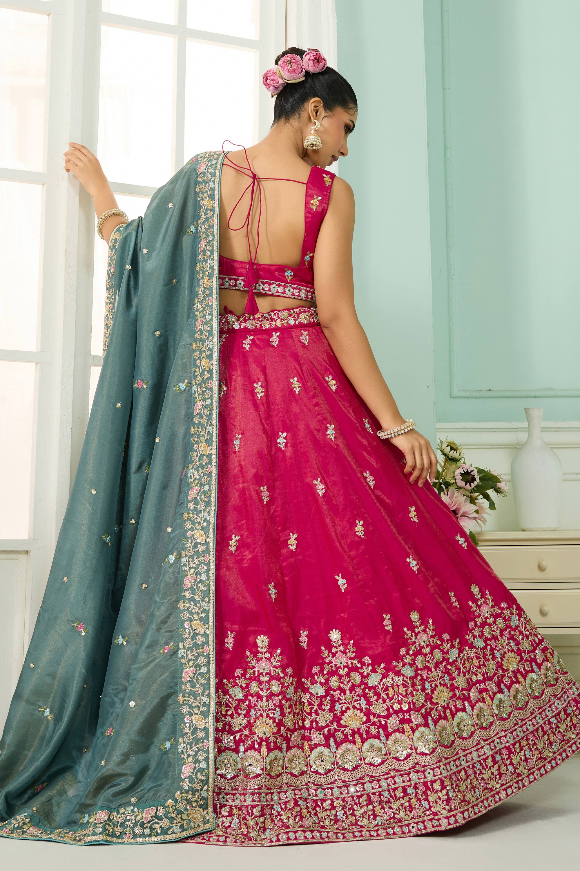 Turn heads at any wedding function with this Reach Color Semi-Stitched Lehenga, detailed with shimmering sequin embroidery. Paired with a three-quarter-sleeve blouse, this ensemble brings an air of elegance to any festive occasion. The drawstring feature provides added comfort, making it easy to tailor the fit to your preference. Perfect for weddings, engagement celebrations, or other special gatherings, this lehenga is a brilliant blend of comfort and glamour. Let its classic yet trendy design reflect your impeccable taste in style.