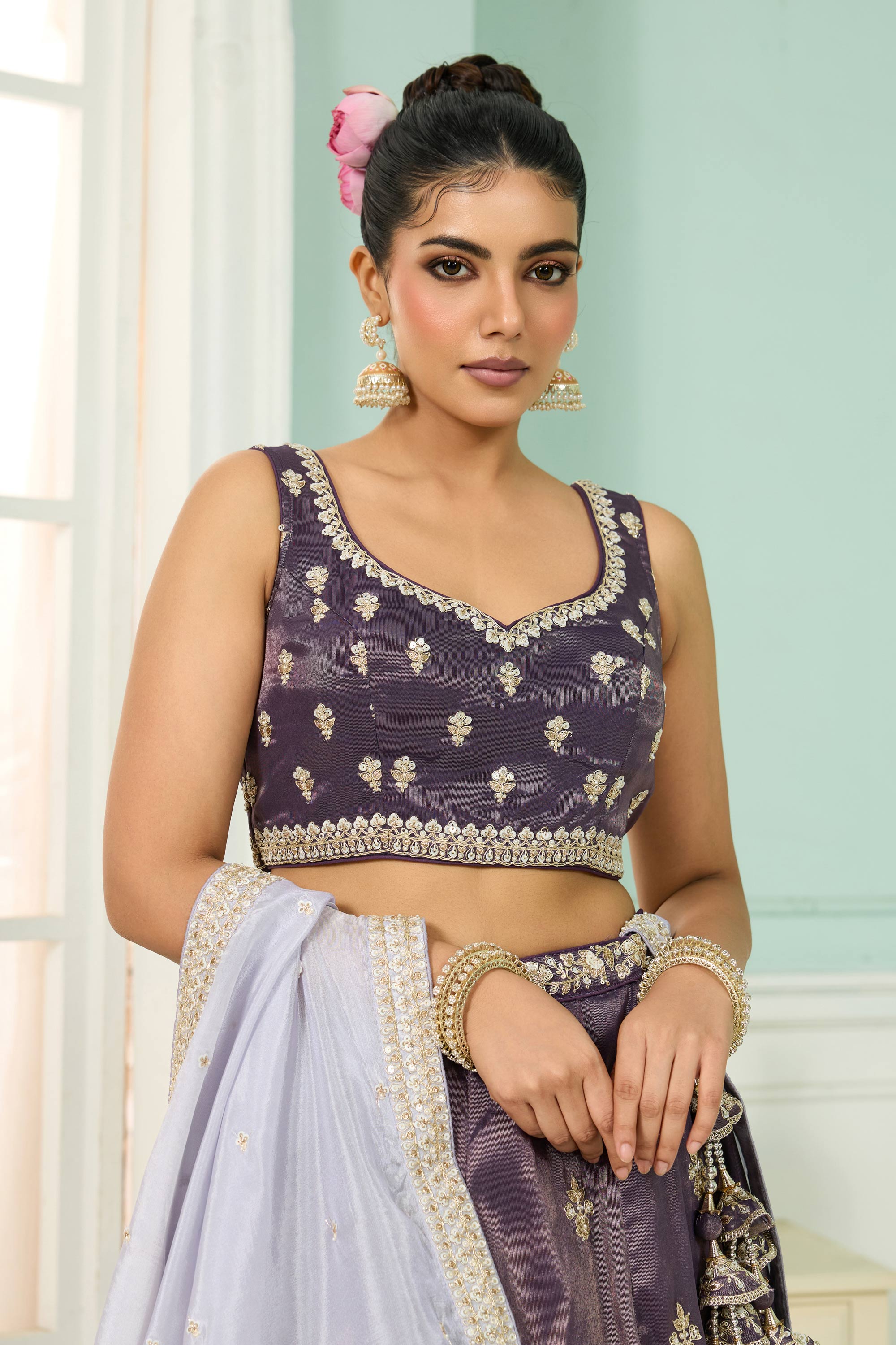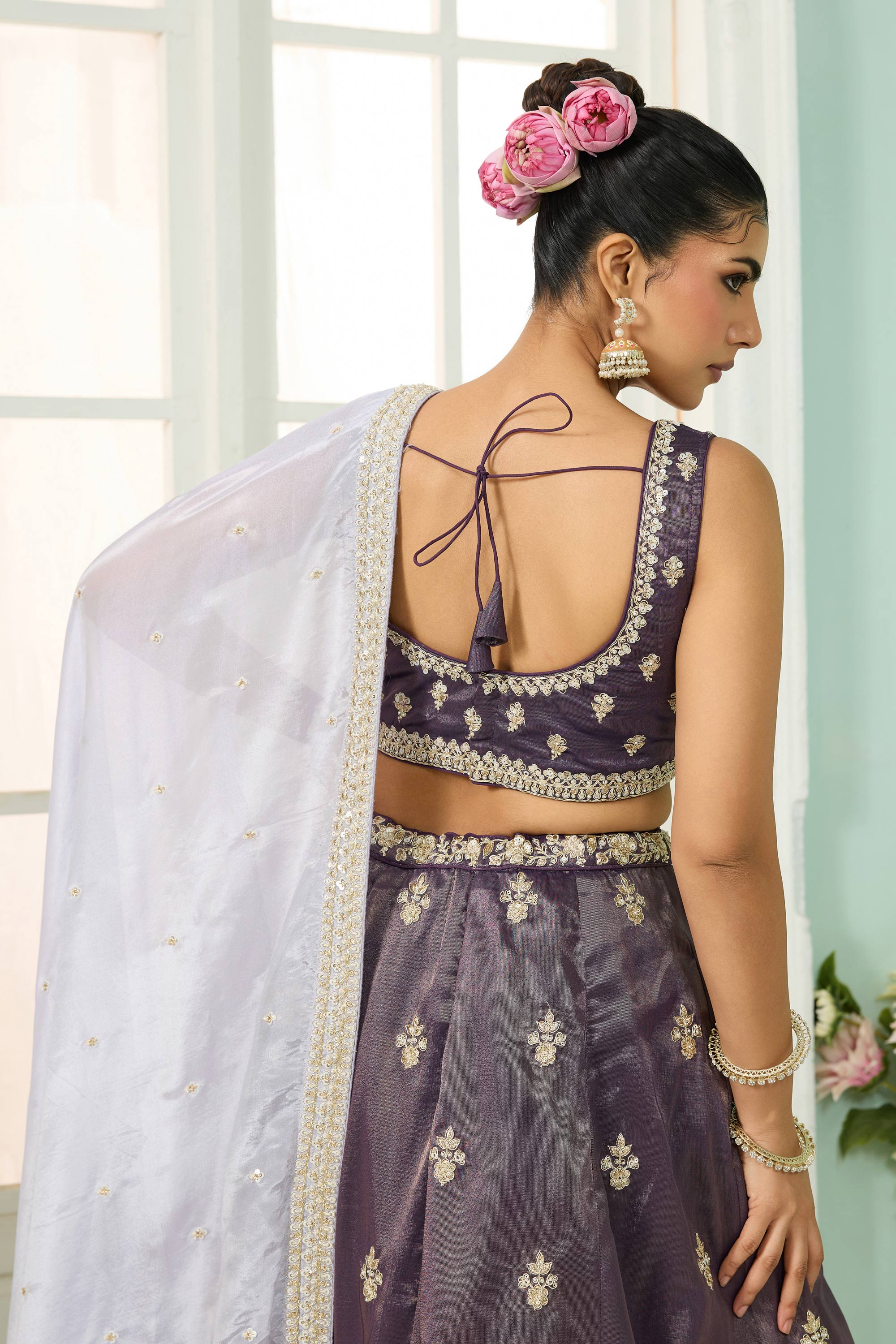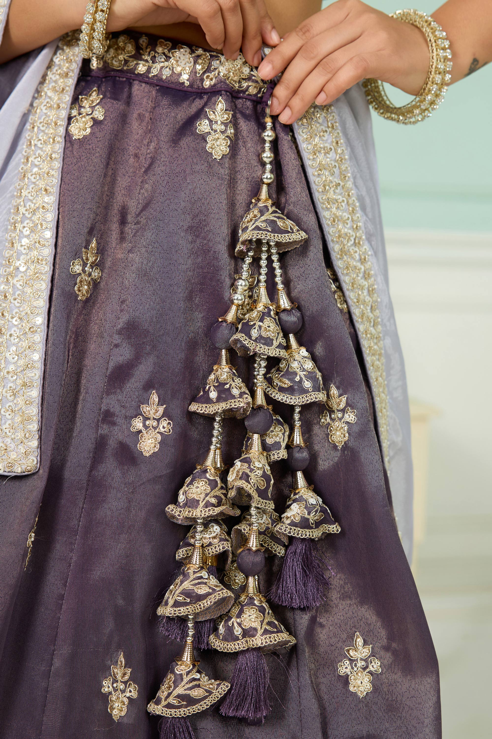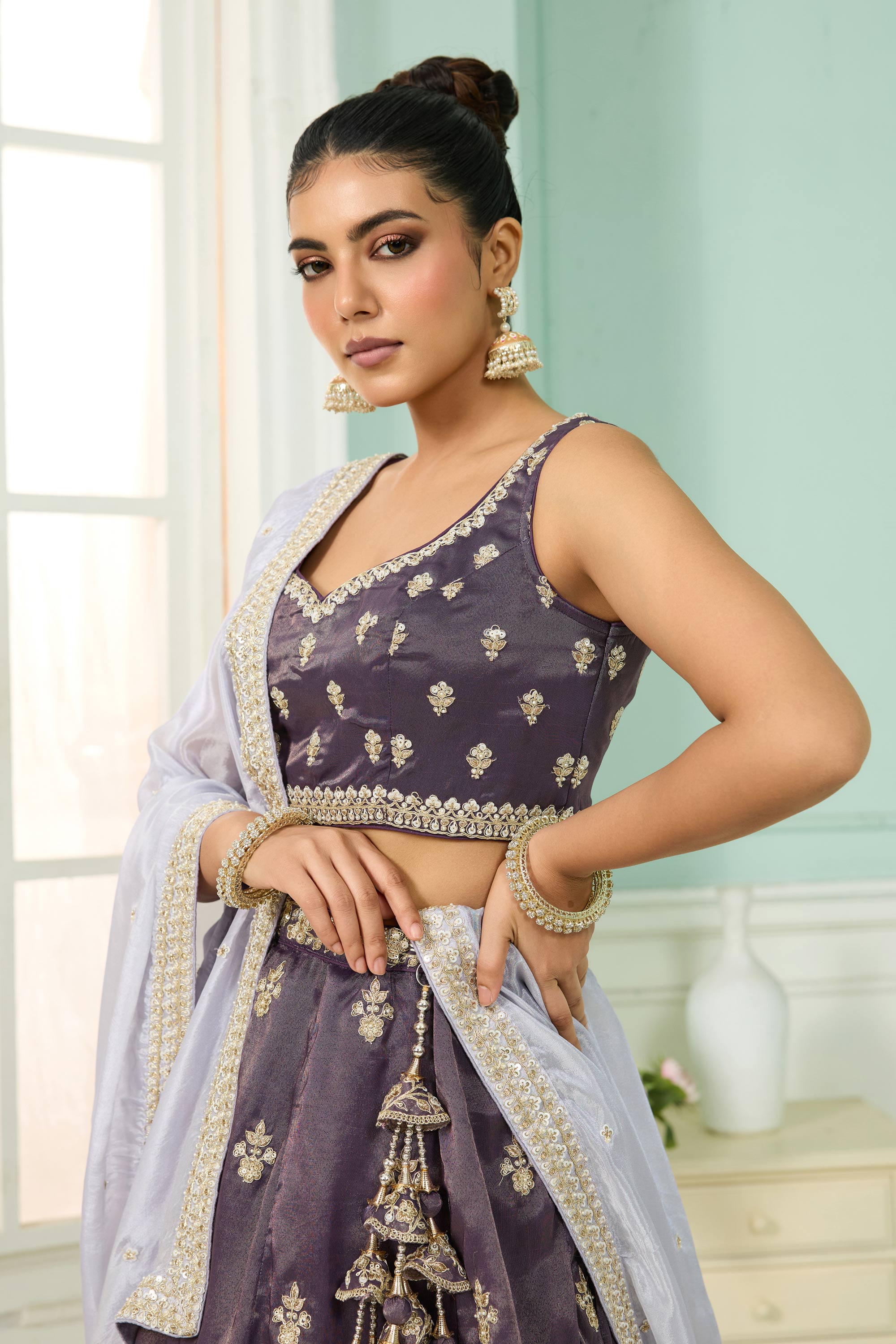 Embroidered Tissue Purple Wedding Wear Lehenga Choli With Dupatta