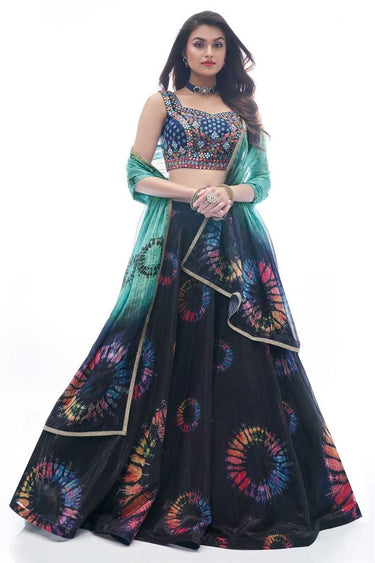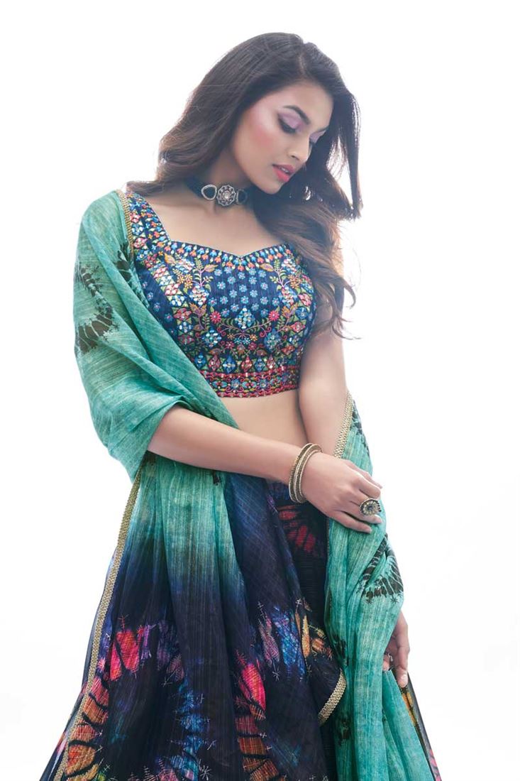Embroidered Work Navy Blue Color Chiffon Fabric Appealing Lehenga