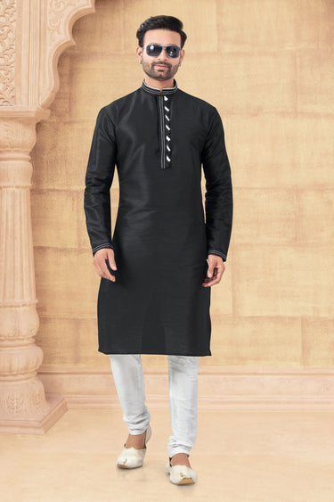 Emerald Elegance Black Long Kurta Pyjama For Men