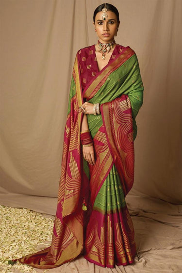 Engaging Green Color Brasso Fabric Saree With Weaving Work