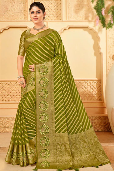 Engaging Green Organza Saree With Weaving Work
