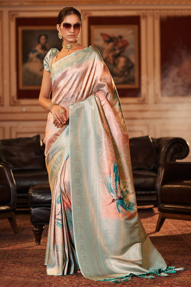 Engaging Peach Color Jacquard Fabric Digital Printed Saree
