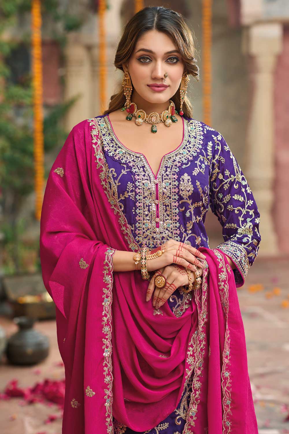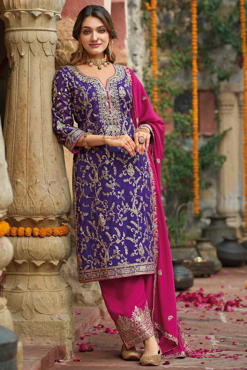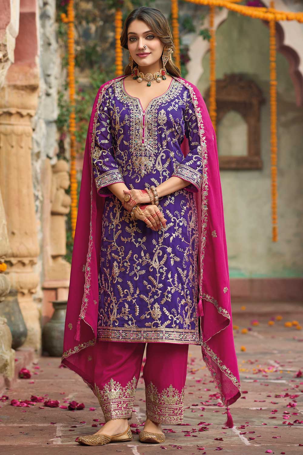 Engaging Purple Color Chinon Fabric Readymade Salwar Suit