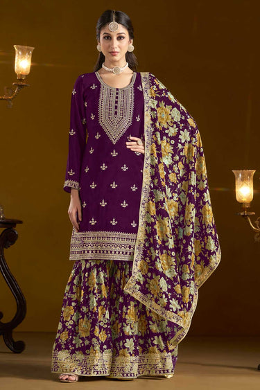 Engaging Purple Color Chinon Fabric Sharara Suit For Function Wear