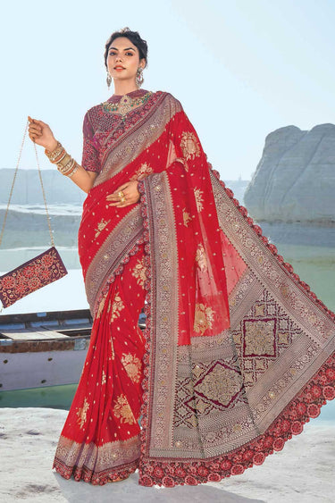 Engaging Red Color Silk Fabric Wedding Wear Saree